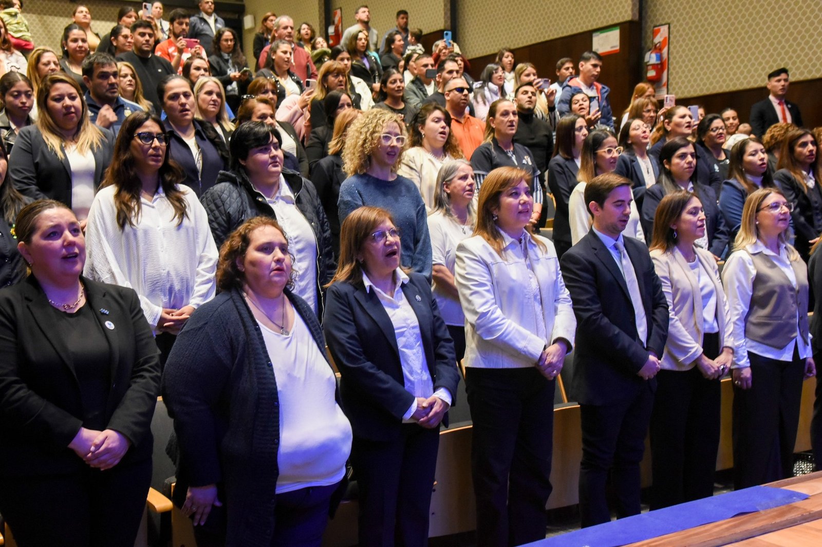 👉El evento fue encabezado por el secretario General, Rodrigo Gomez Tortosa; la subsecretaria de Desarrollo Humano, Alejandra Trejo; la directora de Educación, Isabel Amate Pérez; y la subdirectora de Educación, Marina Runco. Participaron docentes y abanderados de las escuelas Alfonsina Storni y Gabriela Mistral y de los jardines Semillita, Espiguitas, Ardillitas y Querubines.