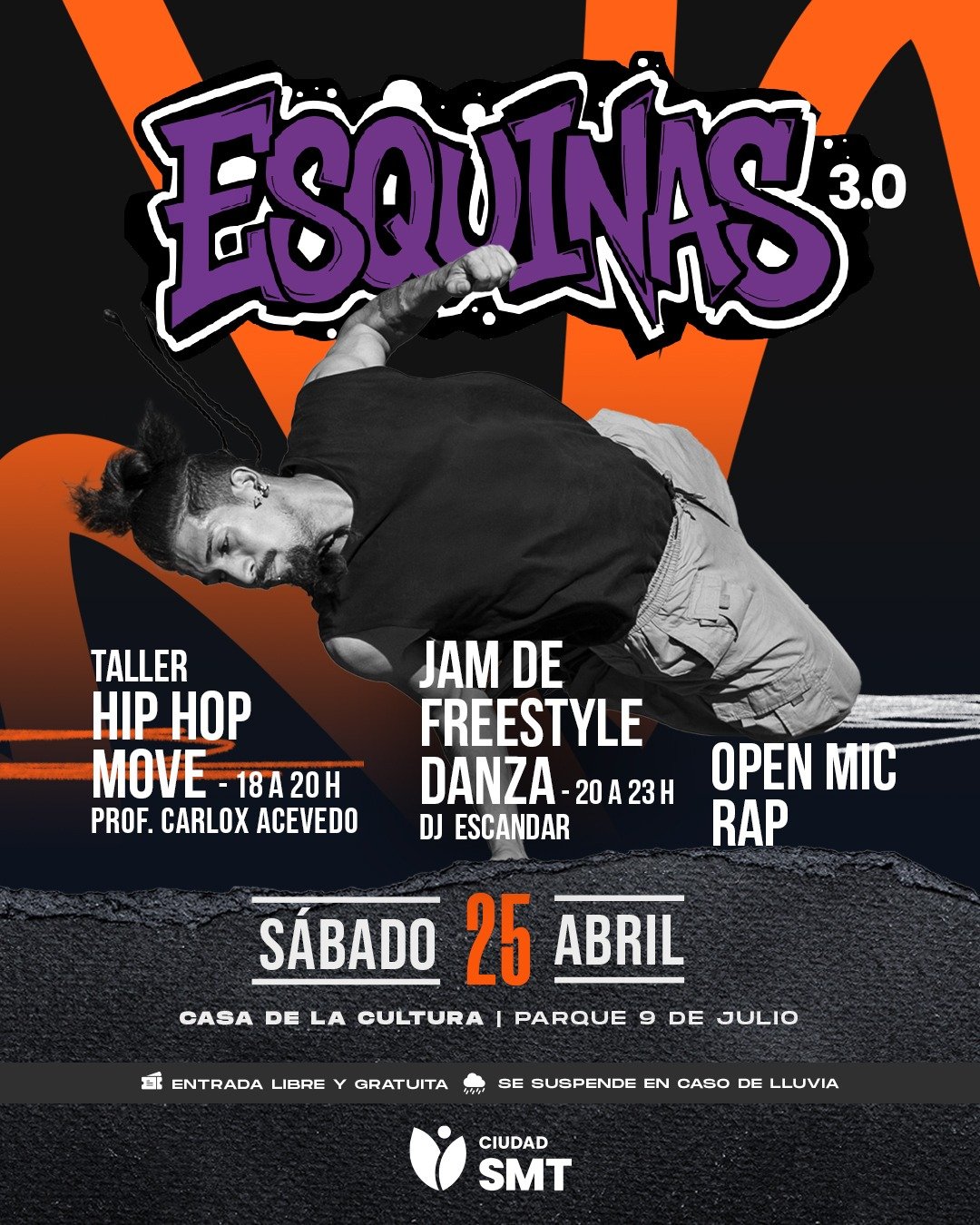 Este sábado 25 de abril vení a disfrutar de Esquinas 3.0 en la Casa de la Cultura, en el Parque 9 de Julio. 🎧