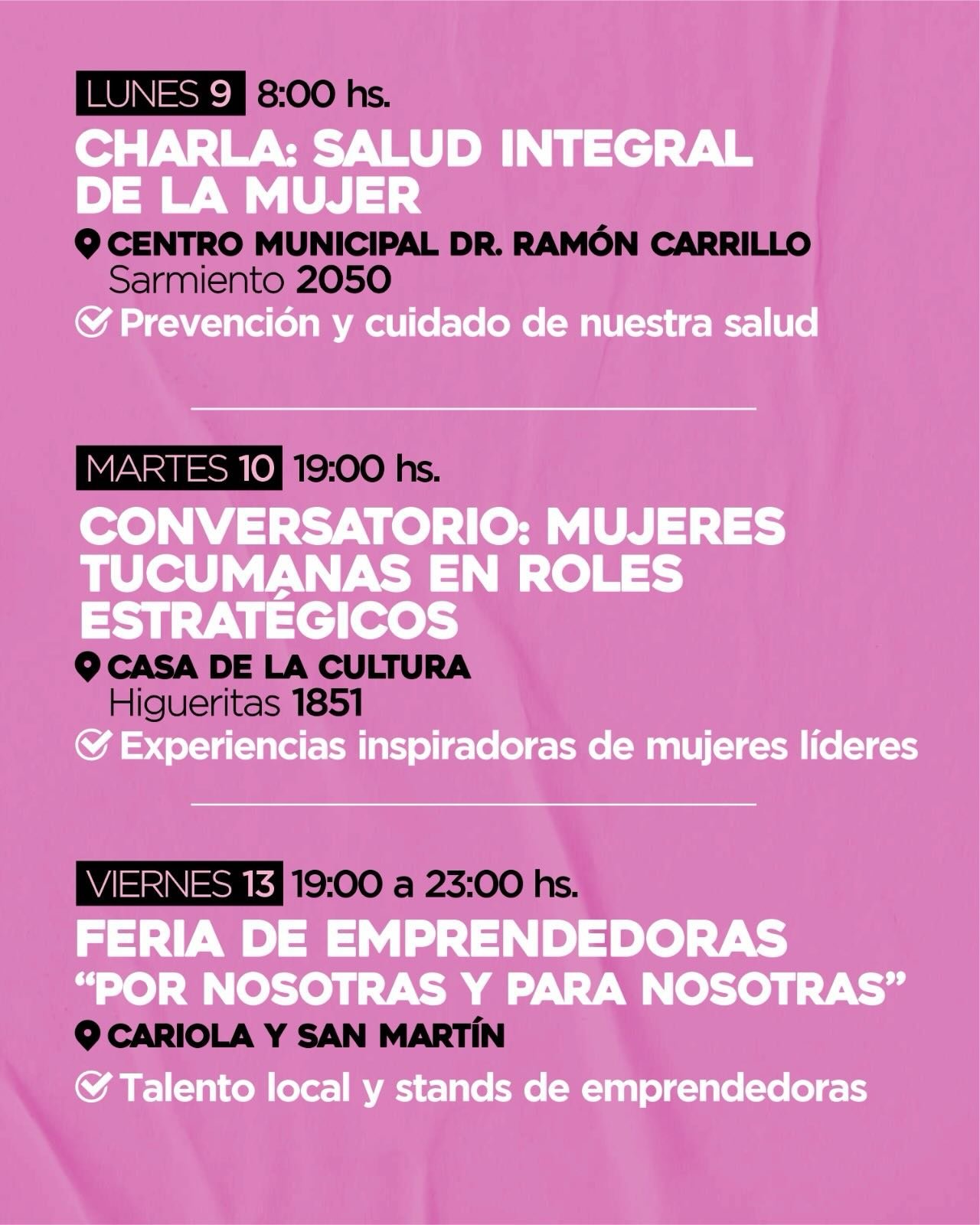 Habrá propuestas con eje en liderazgo, autonomía económica, emprendedurismo y salud preventiva, generando espacios de formación, participación y reconocimiento. ¡Deslizá y elegí la que más te guste! 👉🏽