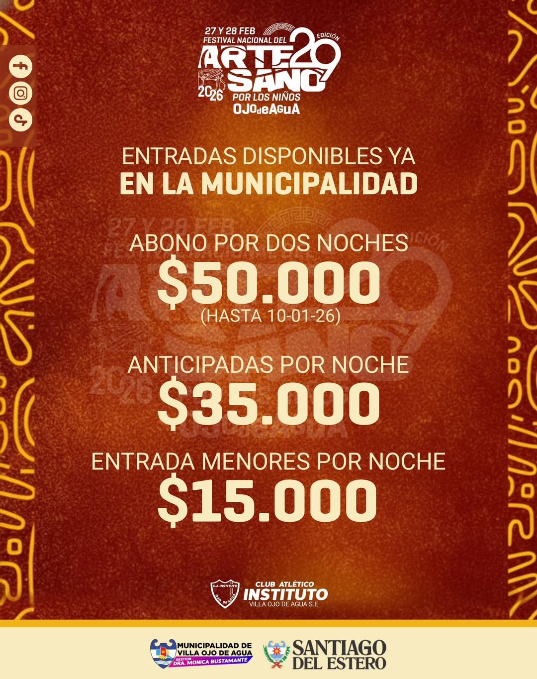 đ« Las entradas para el Festival Nacional del Artesano ya estĂĄn disponibles en la Municipalidad de Villa Ojo de Agua: