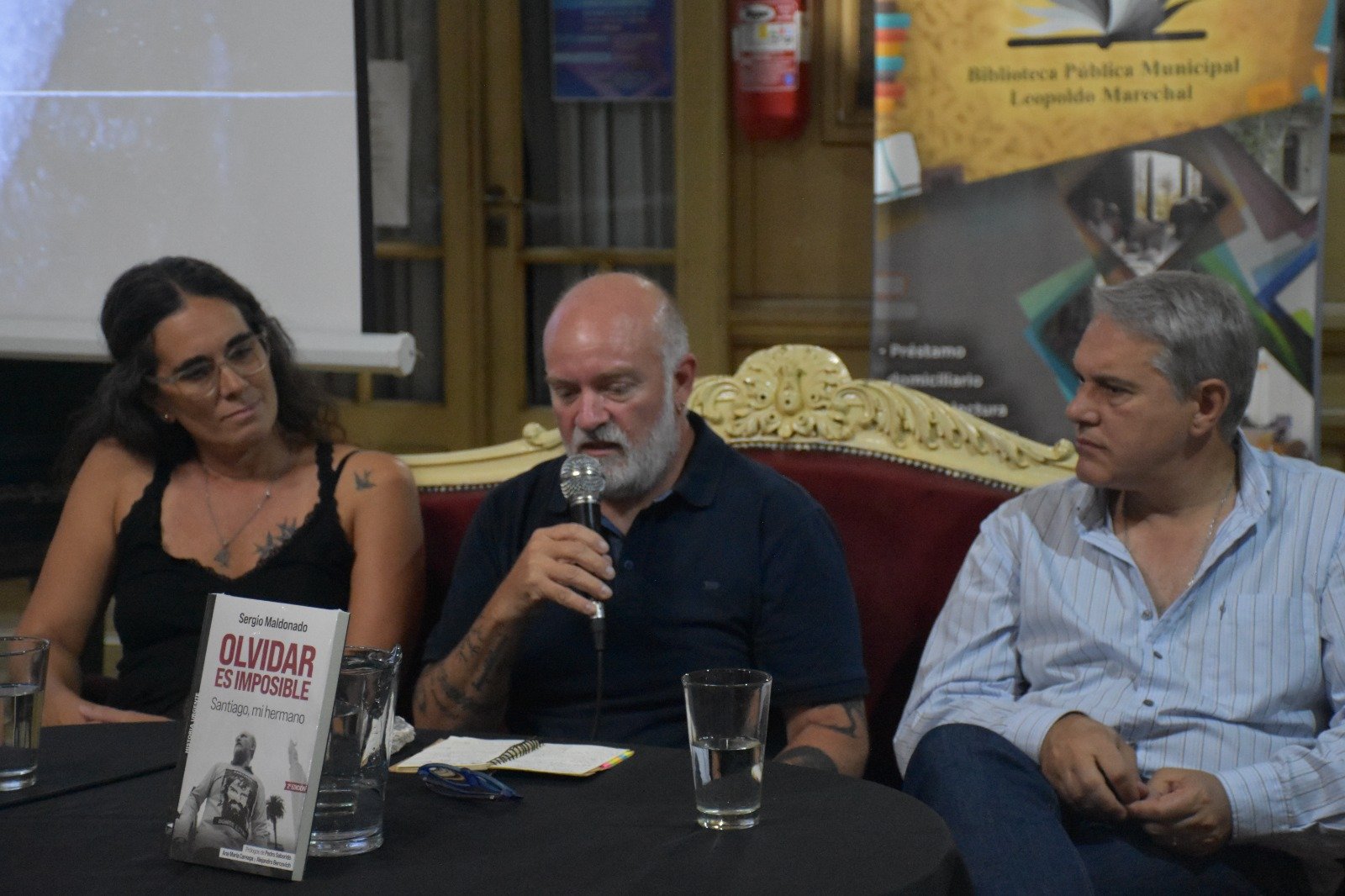 El Intendente Municipal, Darío Golía, se hizo presente este miércoles en la Casa de la Cultura donde Sergio Maldonado, hermano de Santiago Maldonado, presentó su libro “Olvidar es imposible”. Ante un salón colmado, y acompañados por la Subsecretaria de Cultura, Julieta Pederzoli, se disertó acerca del caso de desaparición de Maldonado, así como también de las políticas de derechos humanos.