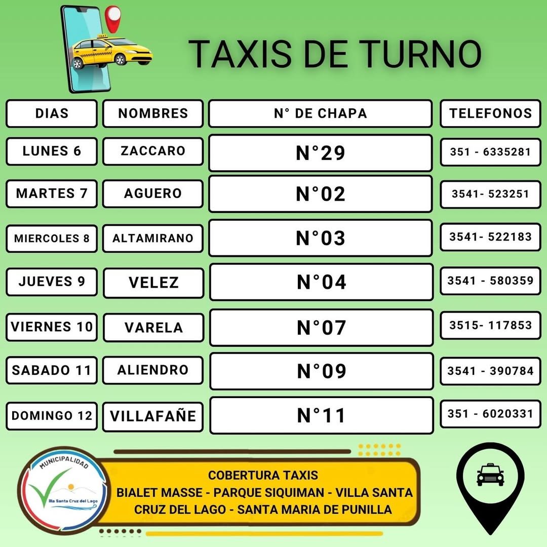 Guardia de taxis, Villa Santa Cruz del Lago y alrededores