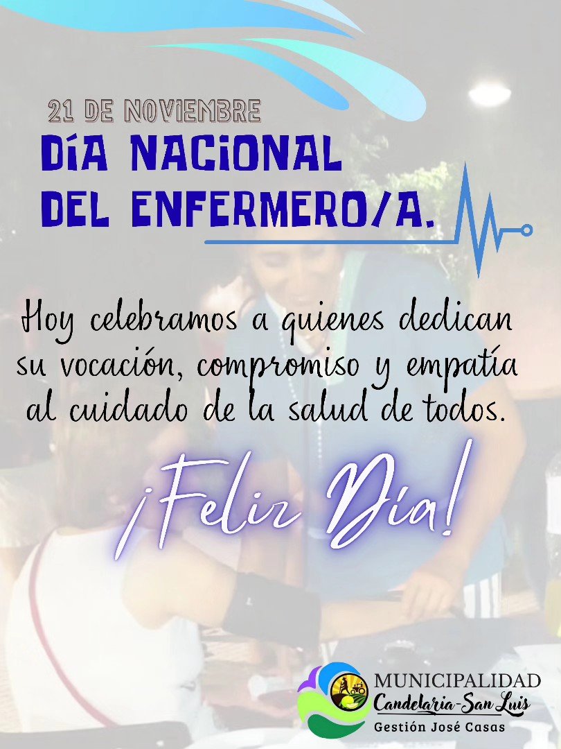 En este día especial, el intendente Municipal Lic. José Ignacio Casas les envía a todos los enfermeros y enfermeras de nuestra localidad un afectuoso saludo.✨Muy Feliz día ✨
