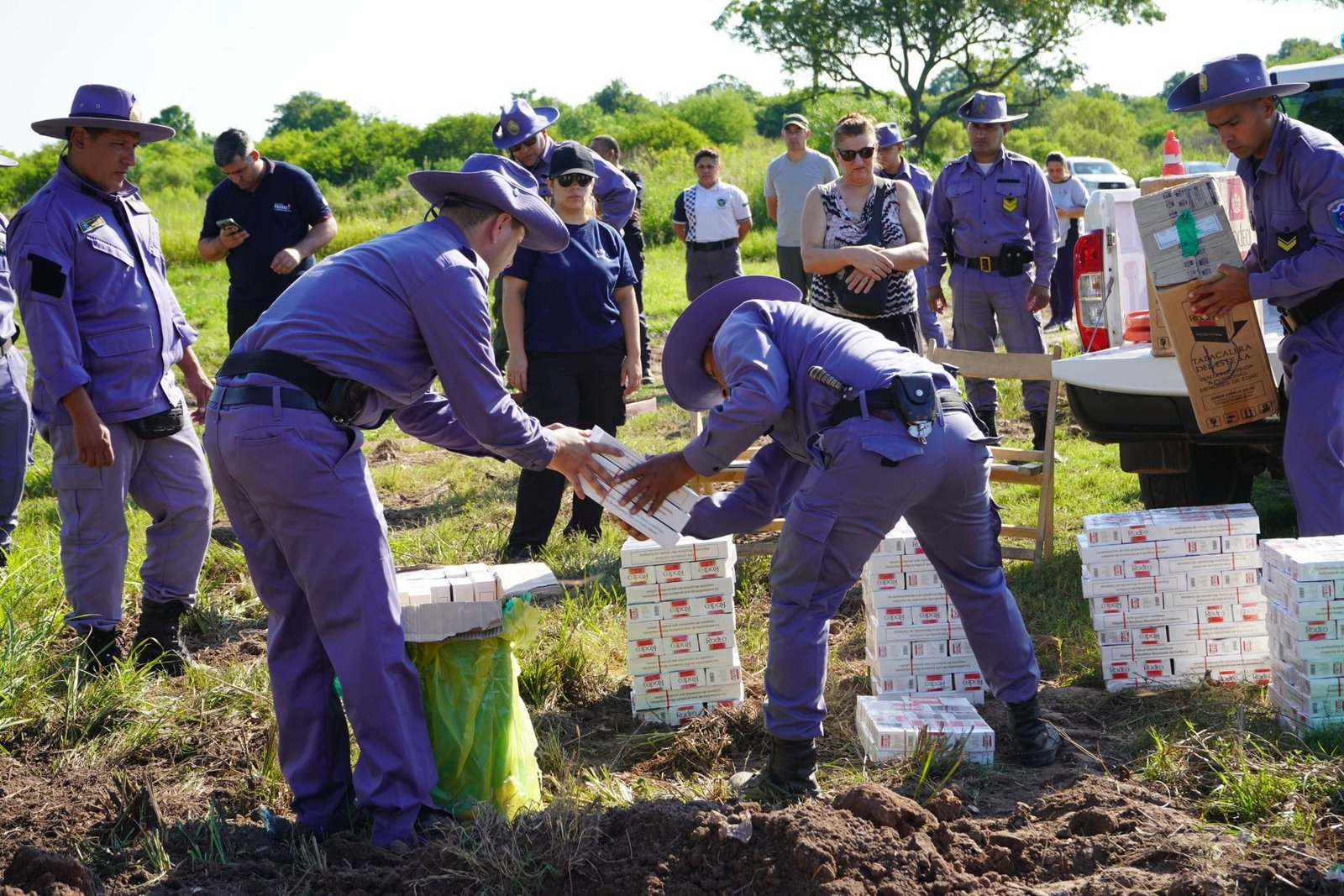 Ayer se realizó en Margarita Belén un operativo de incineración de paquetes de cigarrillos marca RODEO, llevado adelante por el Departamento de Seguridad Rural, con la colaboración del personal de la División de Bomberos de la Policía del Chaco y con la fiscalización del personal de ARCA (Aduana).