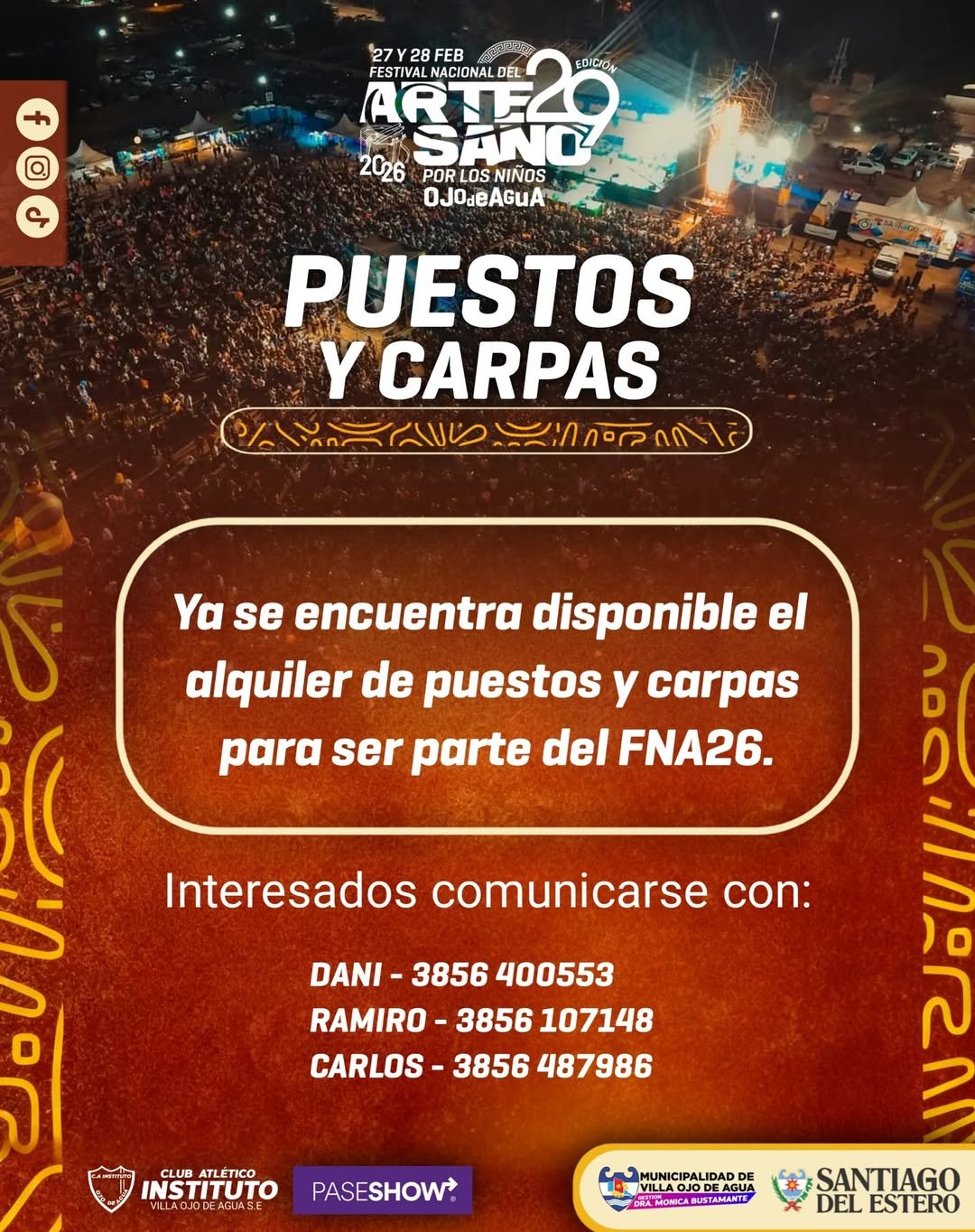 ➡️ Consultá por carpas y puestos para el gran Festival Nacional del Artesano.