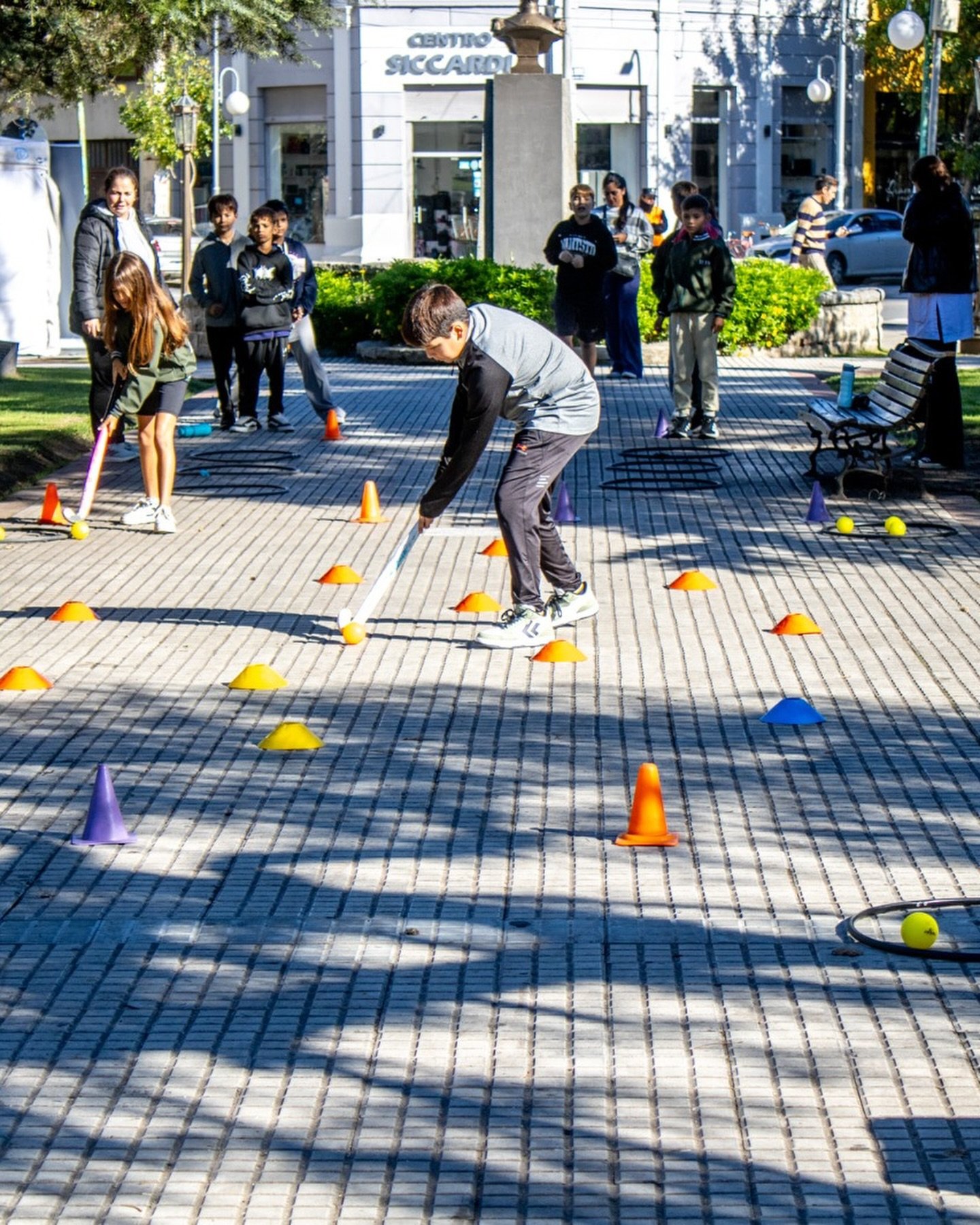📍La Secretaría de Deportes junto a la EP 30 realizó una jornada con juegos y actividades en la Plaza Castelli con motivo del Día de la Actividad Física 🏃🏽♀️♟️🏑🏐🏀