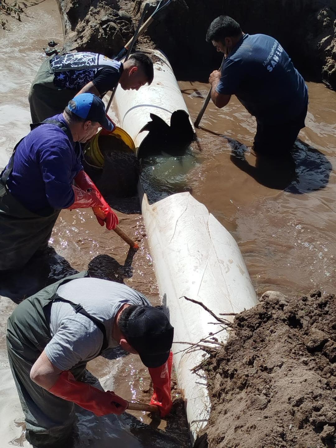 Nuestro equipo retiró el caño dañado y colocó un nuevo conducto de 500 mm, para restablecer el correcto funcionamiento del sistema y mejorar el servicio en la zona.