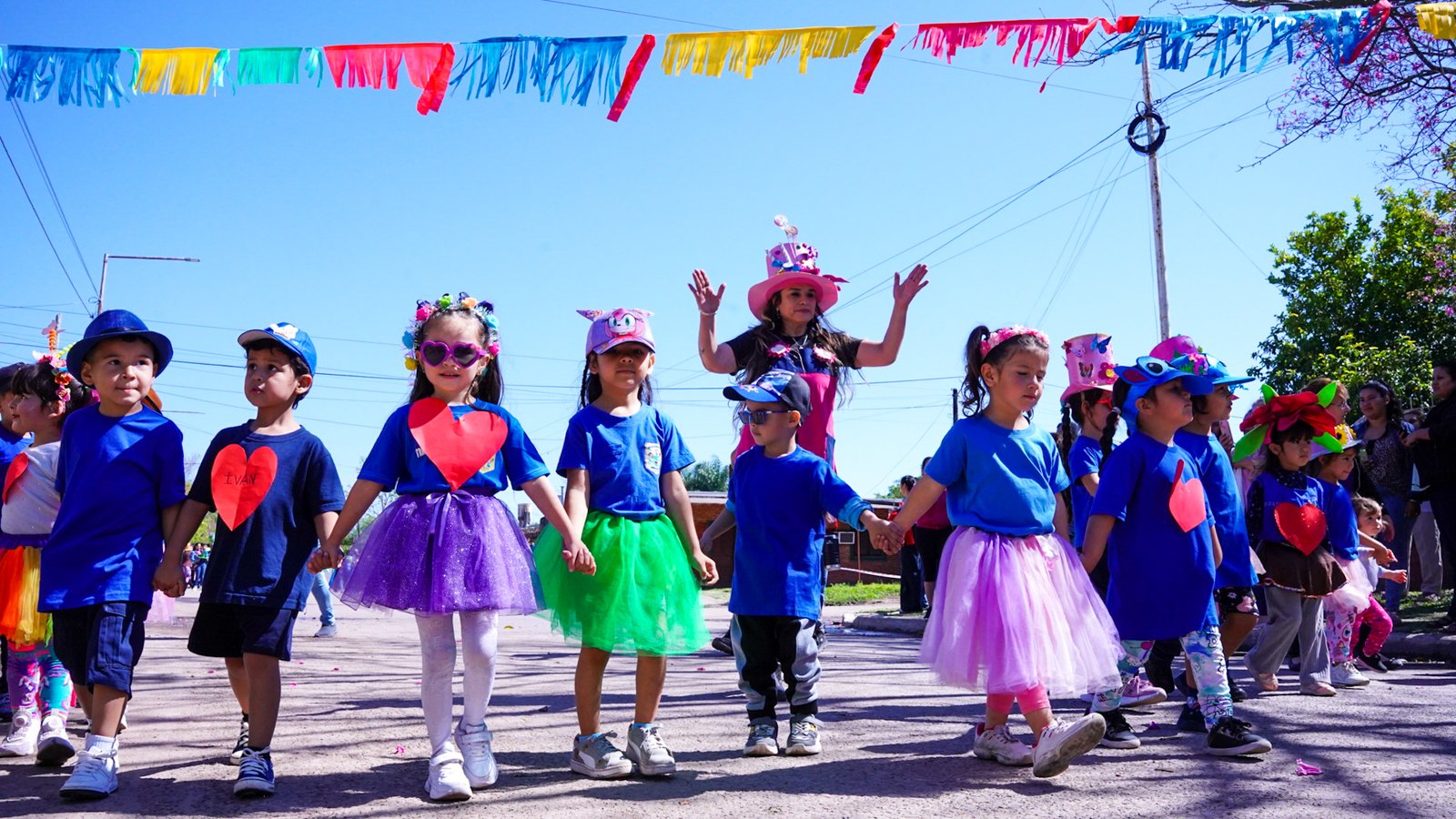 🥳 Con mucha alegría, los niños y niñas del establecimiento desfilaron mostrando trabajos artísticos y disfraces relacionadas con la temática, acompañados por docentes y familiares en todo el recorrido.