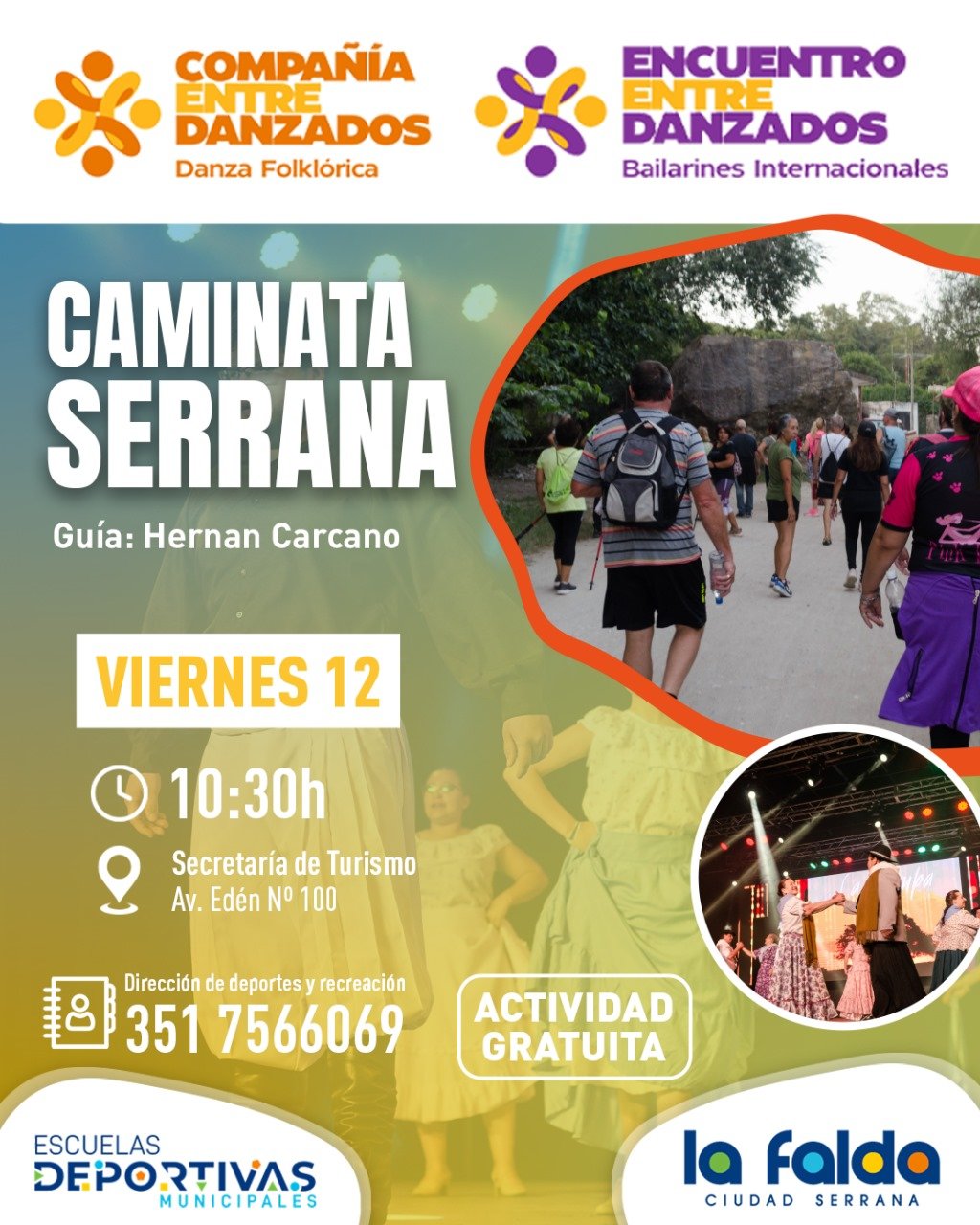 🚶♀️La Municipalidad de La Falda a través de la Dirección de Deporte y Recreación y la Dirección de Cultura tiene el agrado de invitarlos a la Caminata Serrana, la cual se realizará en el marco de las actividades que forman parte del Encuentro de Danzas “Entredanzados”.