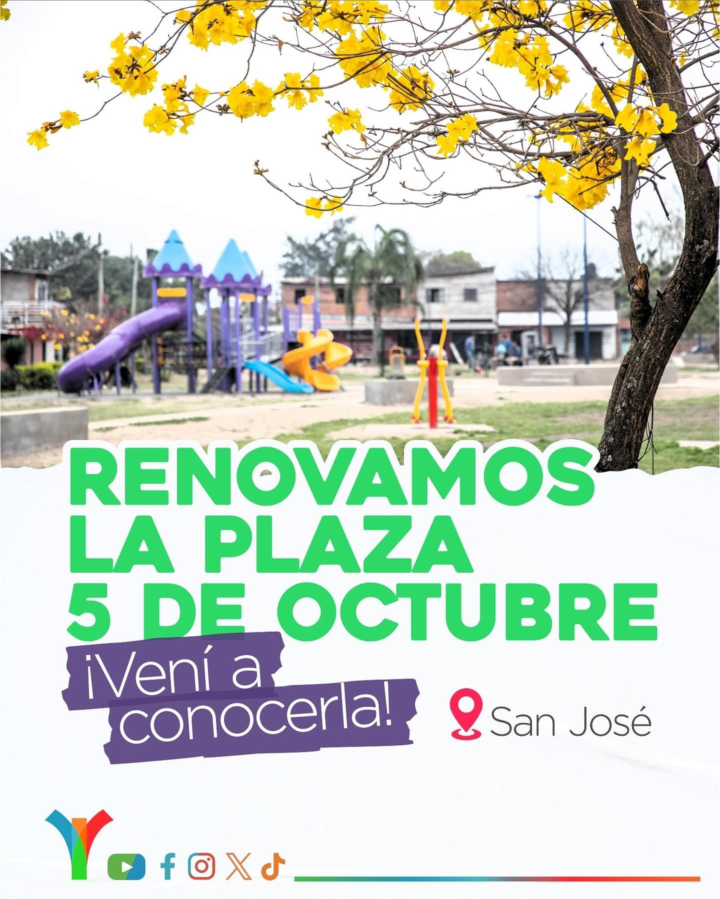 Renovamos la Plaza 5 de Octubre con nueva luminaria, caminería, bancos, canchas y juegos para que la disfrutes con tu familia y amigos ❤️. Deslizá para ver cómo quedó 👉