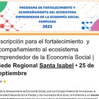 El jueves 25 de septiembre comienza el Programa de Fortalecimiento y Acompañamiento del Ecosistema Emprendedor de la Economía Social Pampeana 2025, pensado para emprendedores, cooperativas, asociaciones, escuelas y organizaciones locales.
