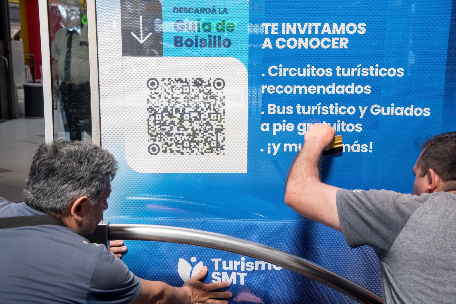 💬 “La idea es que el turista que llega se sienta bienvenido por la Municipalidad, por la ciudad y que escaneando los QR que se encuentran en los vinilos pueda descargar la guía de bolsillo, en la cual se le indica todos los recorridos que puede hacer, así también tiene un mapa de la ciudad y todos los infaltables para tener una excelente visita”, explicó Pablo Gerstenfeld, director de Turismo.