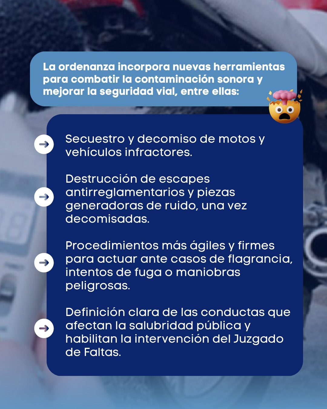 El Honorable Concejo Deliberante aprobĂł, por iniciativa del Intendente, el proyecto de ordenanza para penalizar a quienes alteran la tranquilidad en la vĂ­a pĂșblica, a travĂ©s del uso irresponsable de motos y vehĂ­culos con escapes libres o modificados.