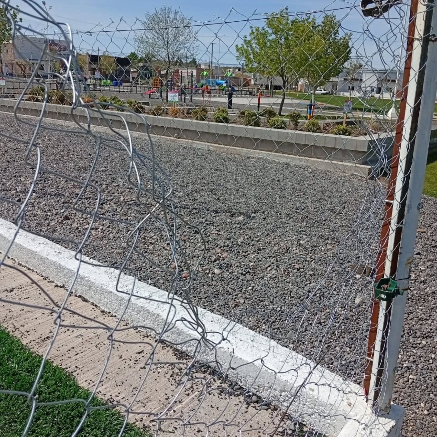 Desafortunadamente el cerco perimetral de la canchita de fútbol sintético de la Plaza del barrio Las Bardas fue vandalizado.