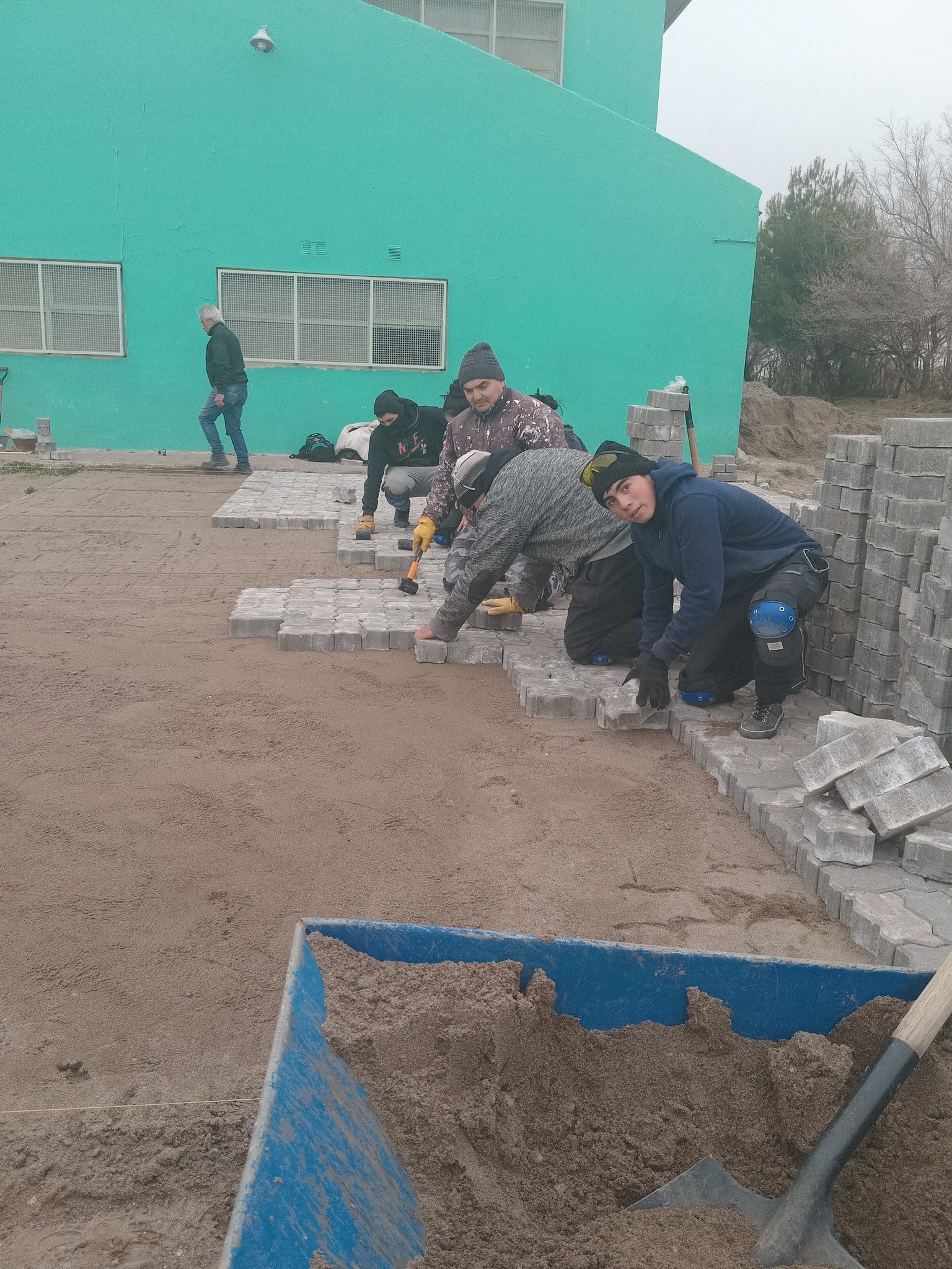 La Municipalidad asumió el costo del transporte de los materiales, permitiendo el inicio de esta obra que mejora el espacio público y brinda oportunidades de formación laboral a jóvenes de Paso de Indios.