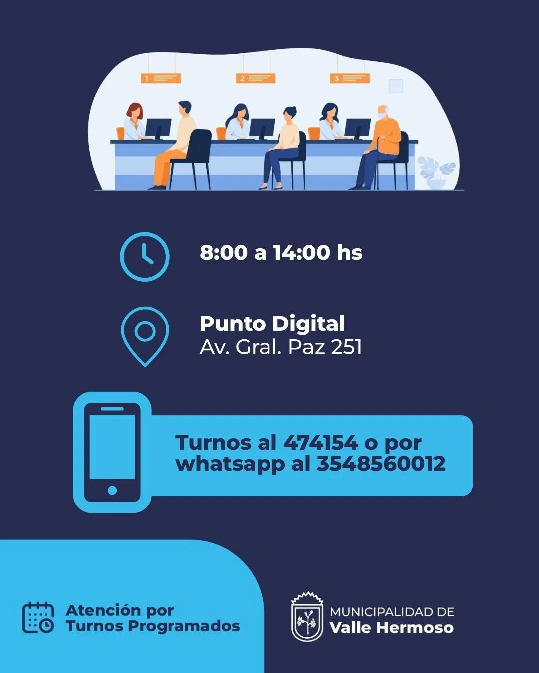 📱 Para sacar tu turno, comunicate al teléfono 474154 y WhatsApp al 3548560012.