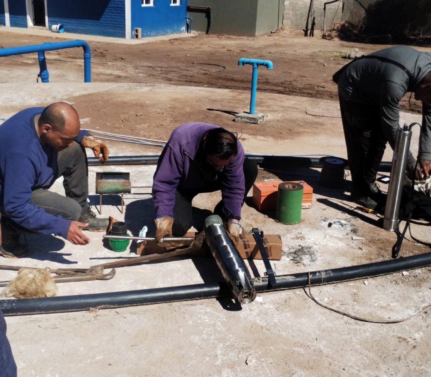 Personal del Instituto Provincial del Agua de La Rioja (IPALAR) llevó a cabo el recambio de una electrobomba sumergible encargada de impulsar el agua hacia el tanque elevado, desde donde luego se realiza la distribución a la red domiciliaria.