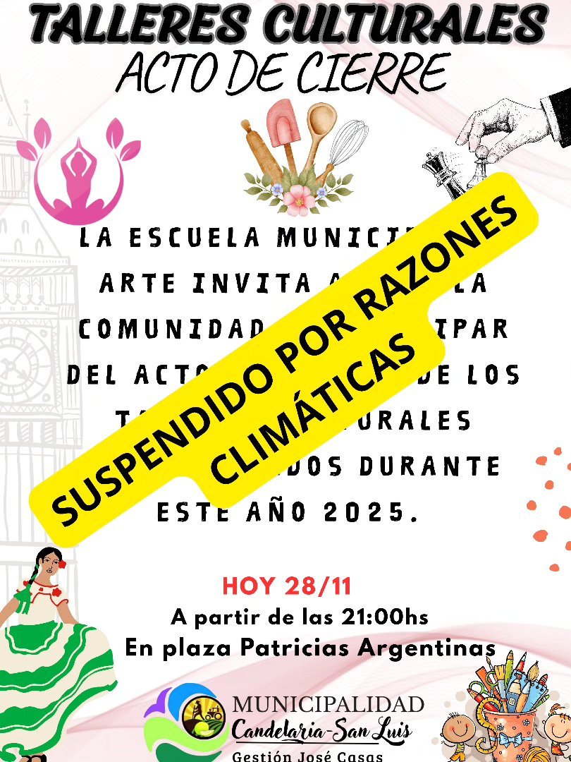 Por razones Climáticas (Tormenta Eléctrica) se suspende el evento programado para hoy, se informará la nueva fecha de realización.