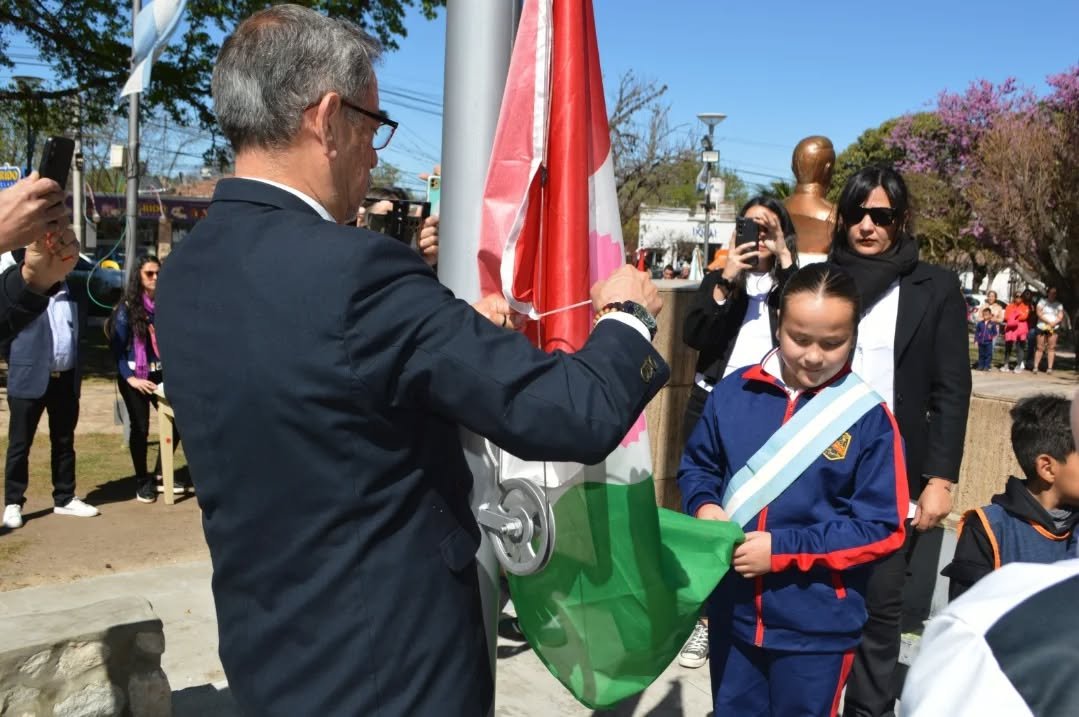 Finalmente, en un gesto de profundo simbolismo, se hizo entrega de un ejemplar de la nueva bandera a la Escuela Silvano Loza marcando el inicio de su camino como emblema oficial que flameará en cada rincón de Villa Giardino.