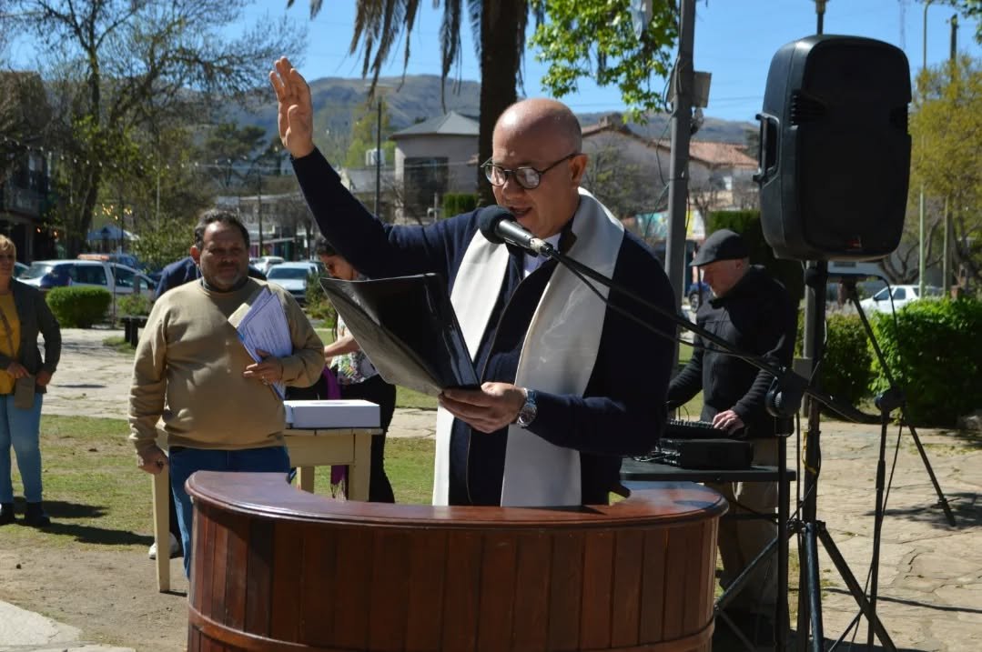 El acto comenzó con el izamiento de las banderas de la Nación Argentina, la Provincia de Córdoba y la flamante Bandera de Villa Giardino, acompañado por la bendición del párroco Gaston Gattino.