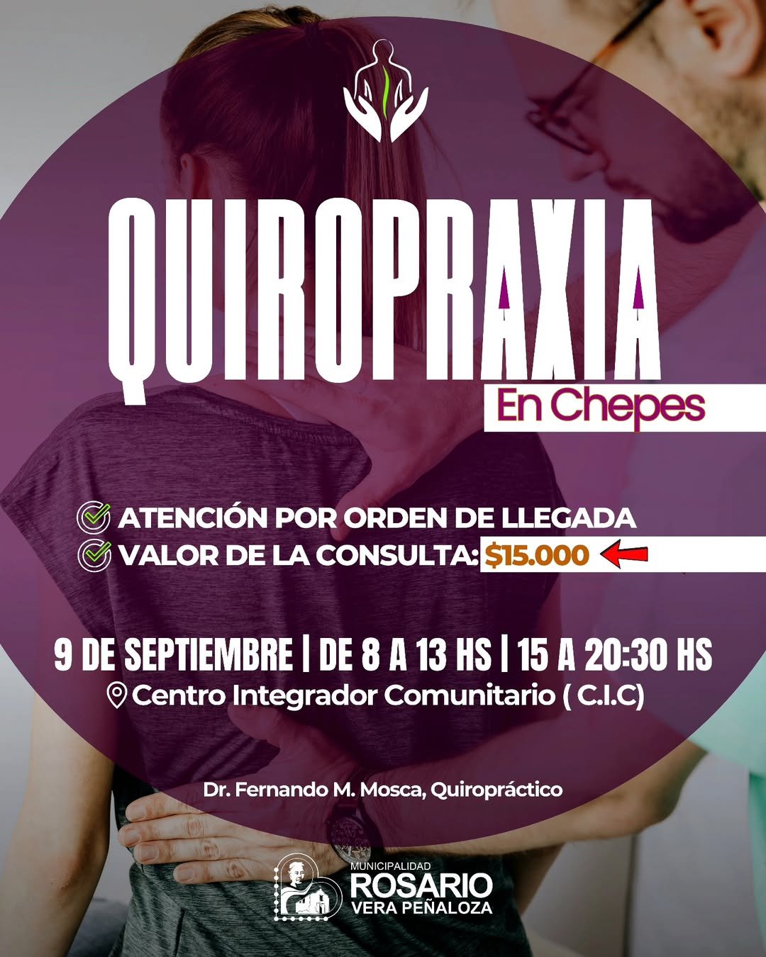 Este 9 de septiembre, llega nuevamente la Quiropraxia al CIC (Centro Integrador Comunitario) de la mano del Dr. Fernando M. Mosca, quiropráctico.