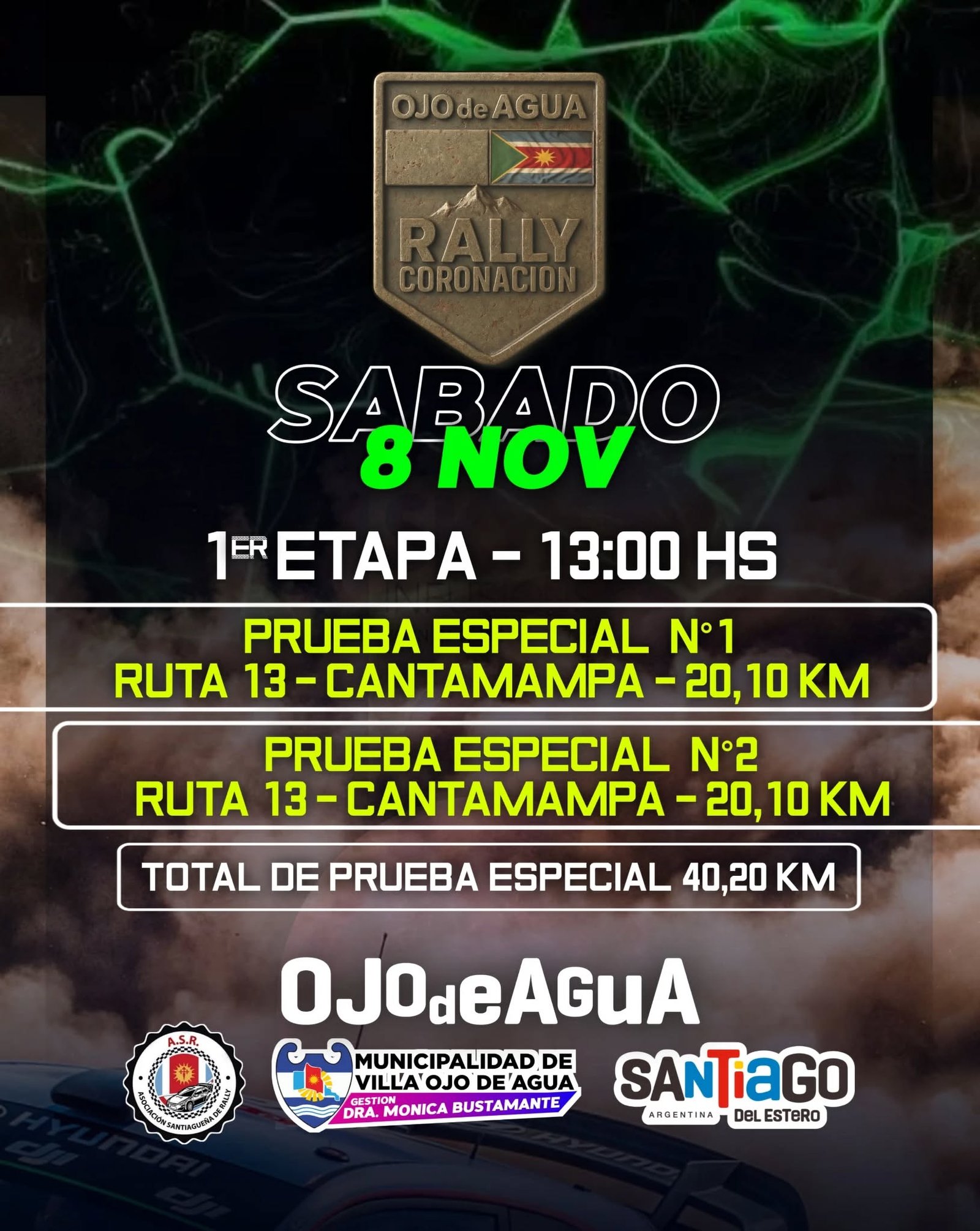 👉 Sábado 8: 1° Etapa del Rally, inicia a las 13:00 hs con las pruebas especiales 1 y 2 (Ruta 13 – Cantamampa).