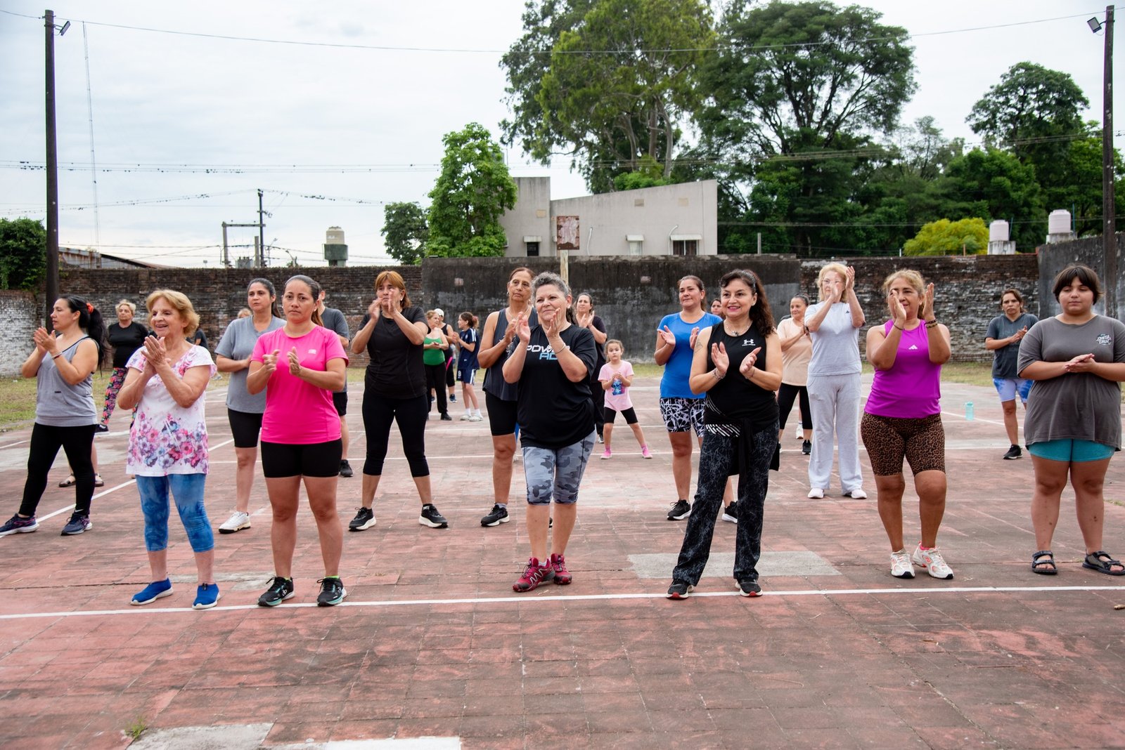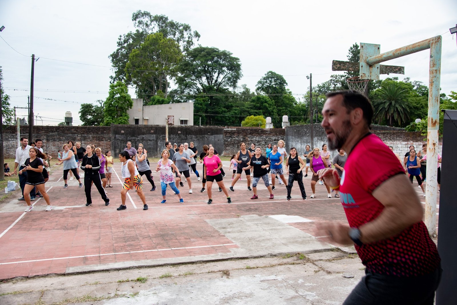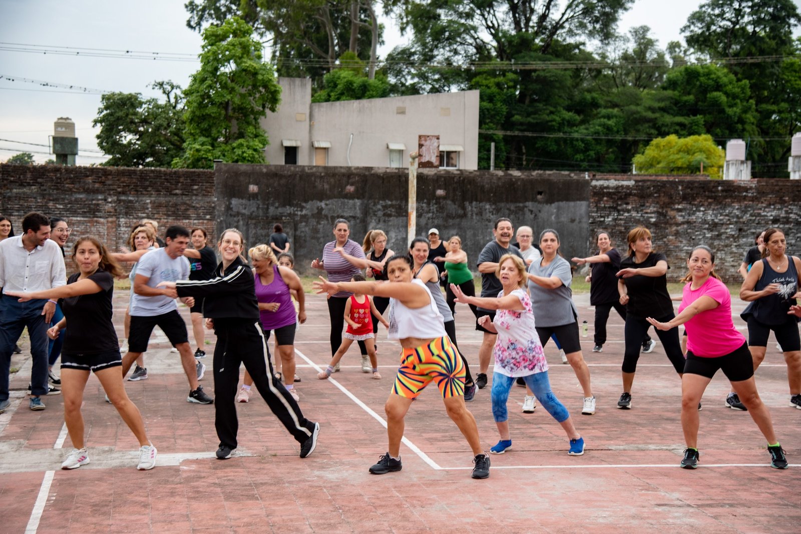 Más de 50 vecinas de la zona noroeste participaron de una clase gratuita de Zumba en el Centro Cultural y Deportivo del Barrio Kennedy (Ecuador al 3300), que volvió a abrir sus puertas luego de años.