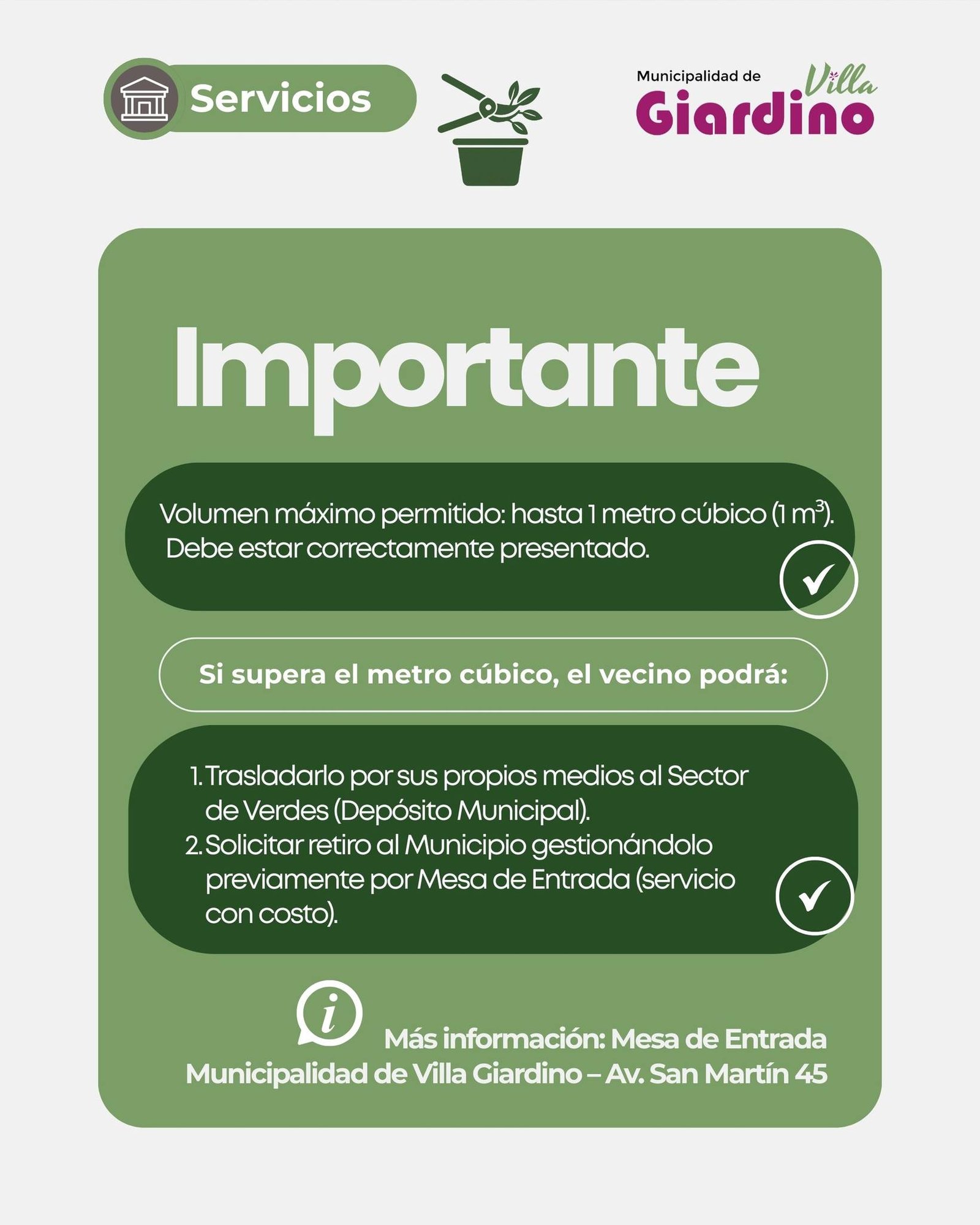 Pedimos a los vecinos colaborar respetando los plazos y volúmenes establecidos para mantener nuestra localidad limpia y ordenada.