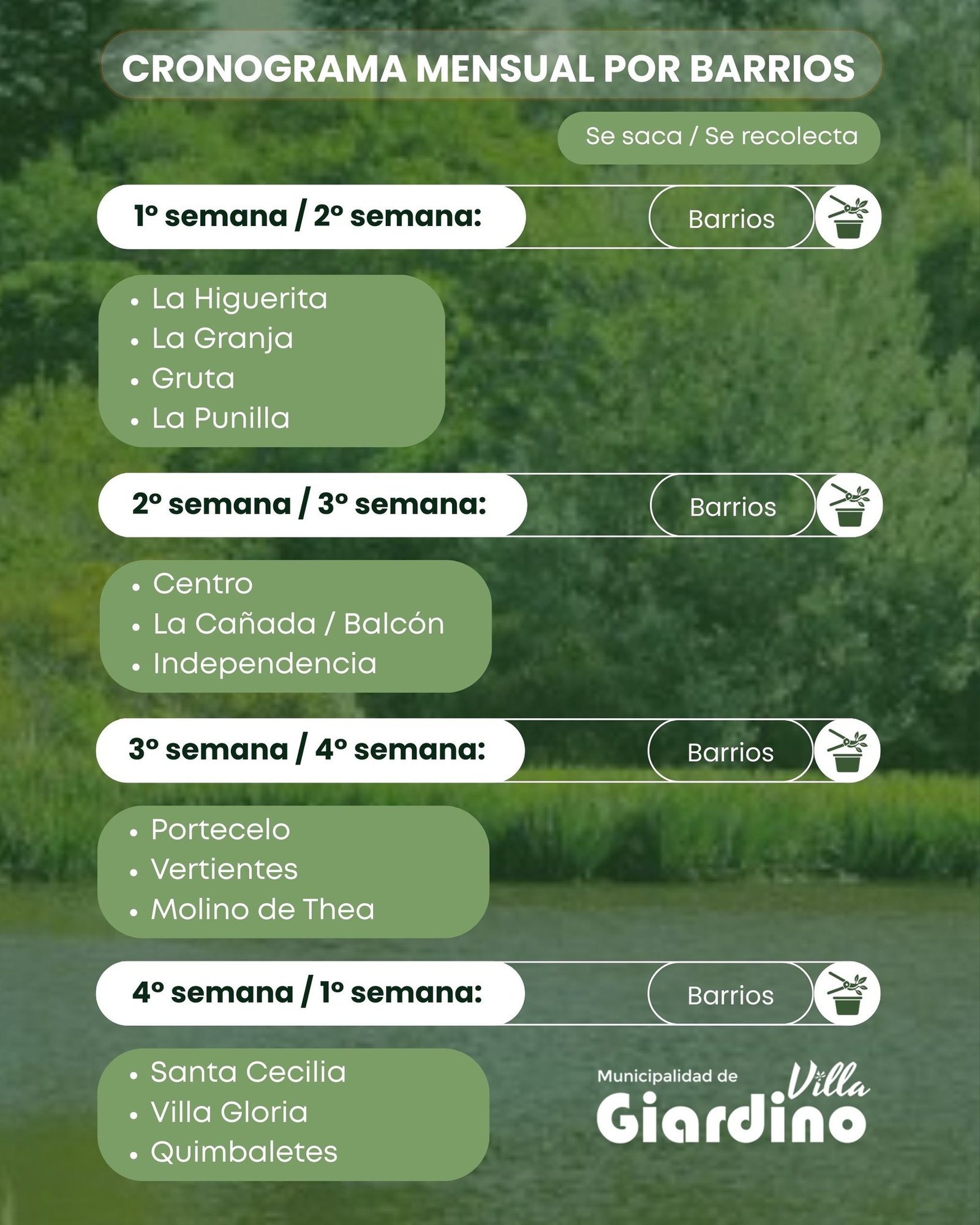 👉 Finalizado este período, comenzará a regir el esquema de recolección por barrios, según cronograma establecido por ordenanza.