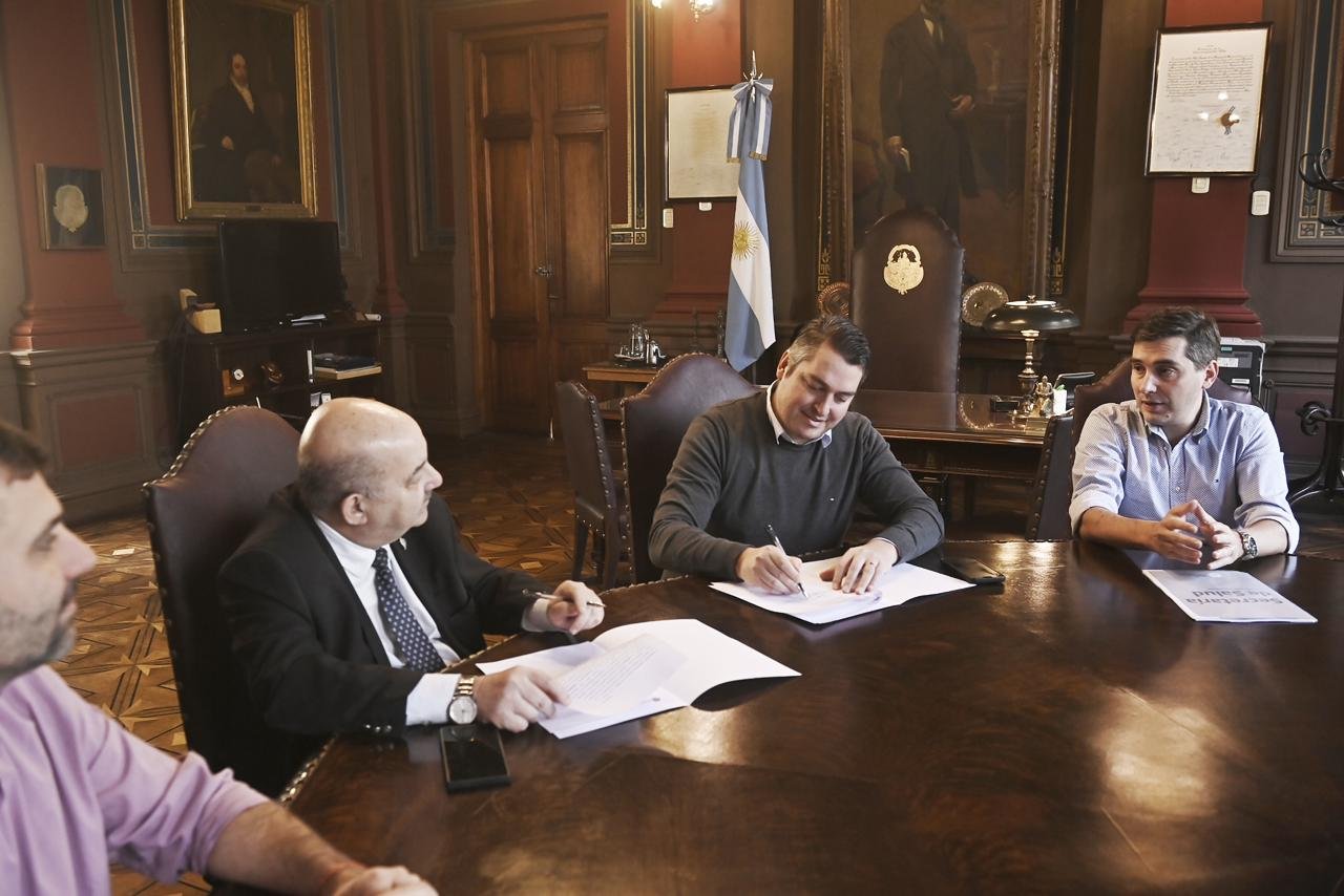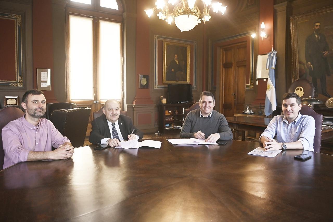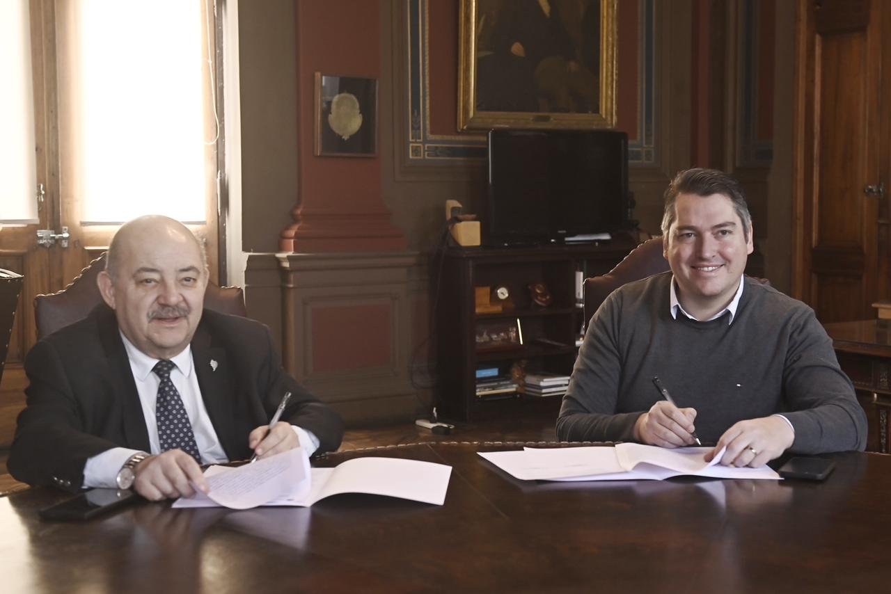 El intendente Martín Perez y el presidente de la Casa de Altos Estudios, Fernando Tauber, firmaron un convenio para seguir fortaleciendo la formación, la investigación y el desarrollo en materia sanitaria.