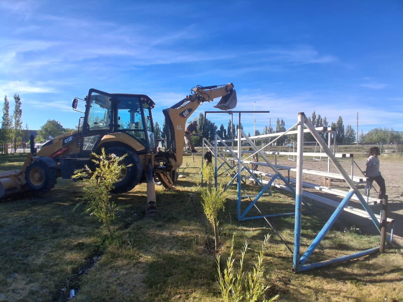 ▶️Colocación de tribunas, cedidas a prestamo por el Club Rio Mayo, para el Torneo Mixto de Voley del sábado 7 de marzo, en el Camping Municipal.