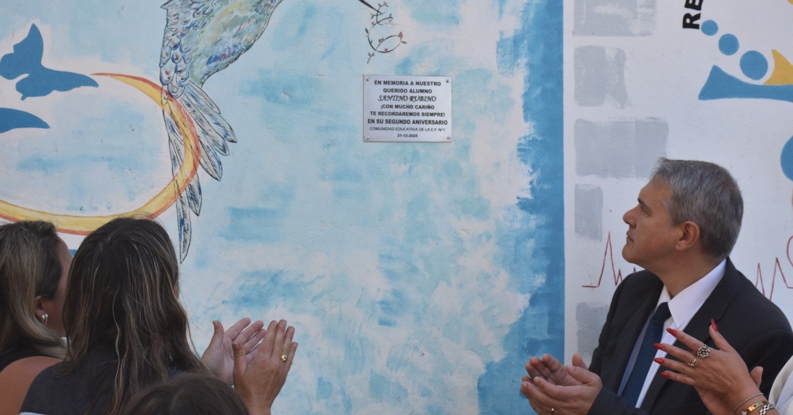 En primer término, la comunidad educativa de la escuela, junto a la familia de Santino y el Intendente Golía, plantaron un Ciruelo de Jardín en su memoria, colocado sobre el Pasaje Rodríguez.