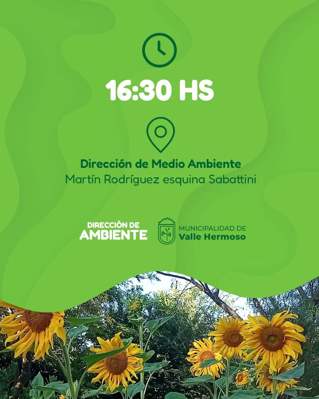 📍 Será el viernes 5 de septiembre a partir de las 16:30 hs, en la Dirección de Medio Ambiente de la Municipalidad de Valle Hermoso, ubicada en Martín Rodríguez esquina Sabattini.