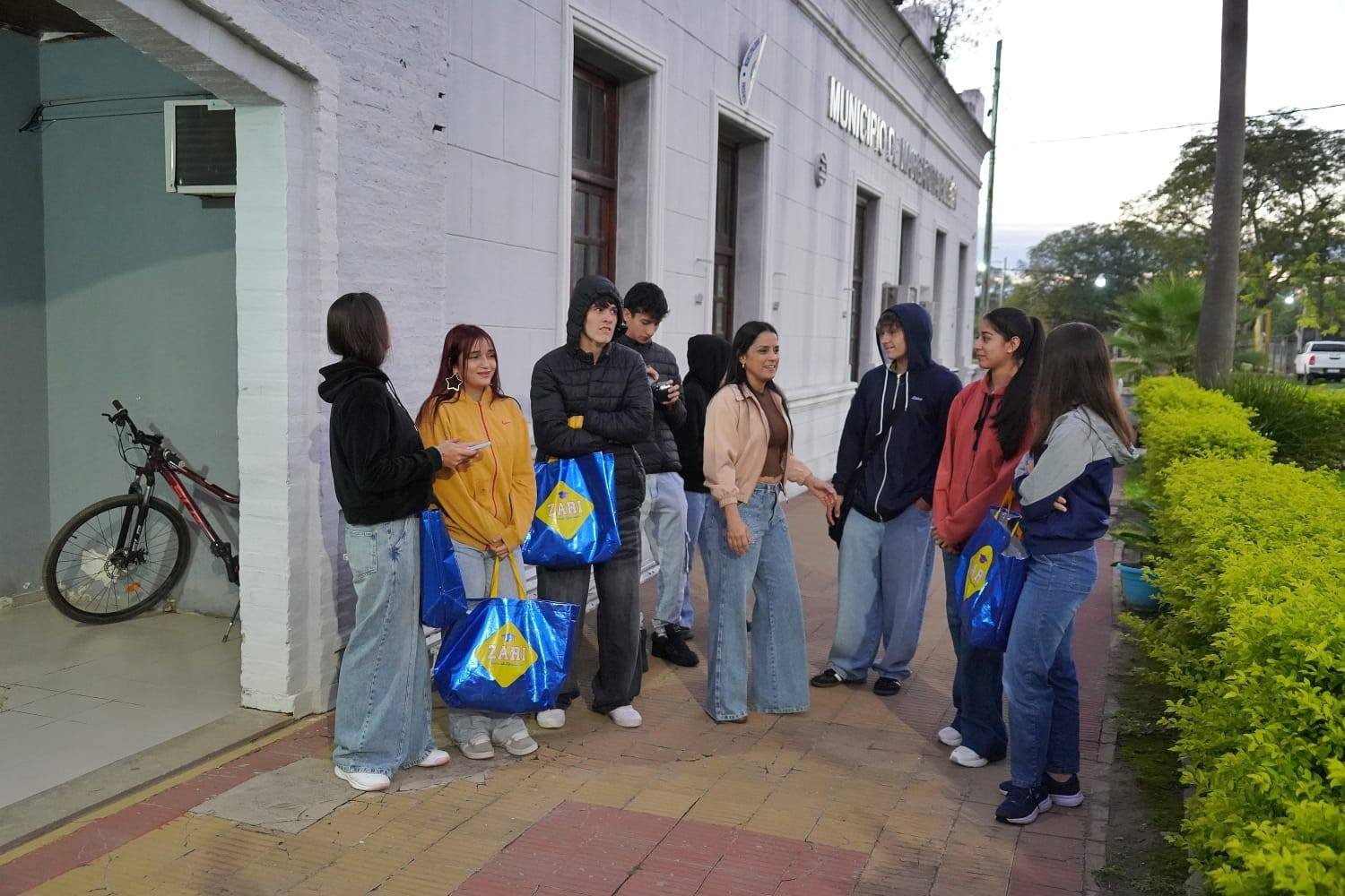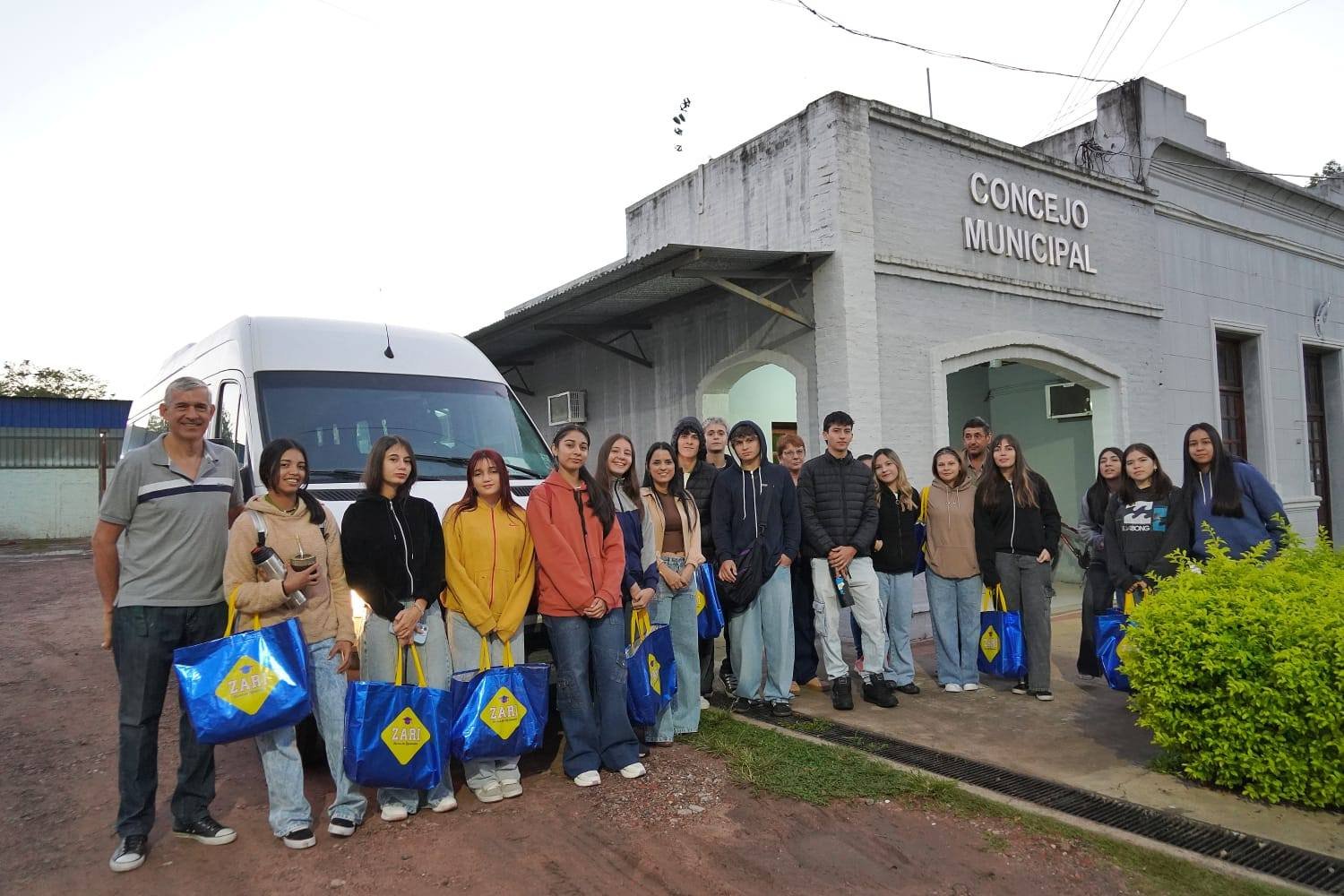 👕 Esta mañana, la Presidente del Concejo, María de los Ángeles Fretes, junto al Coordinador de Educación, Francisco Chacón y el equipo del Área de Juventud, despidieron a los alumnos de 5° 2ª de la EES N°77 “Manuel N. Savio”, quienes viajaron a Corrientes para realizar la sesión de fotos de su promoción.