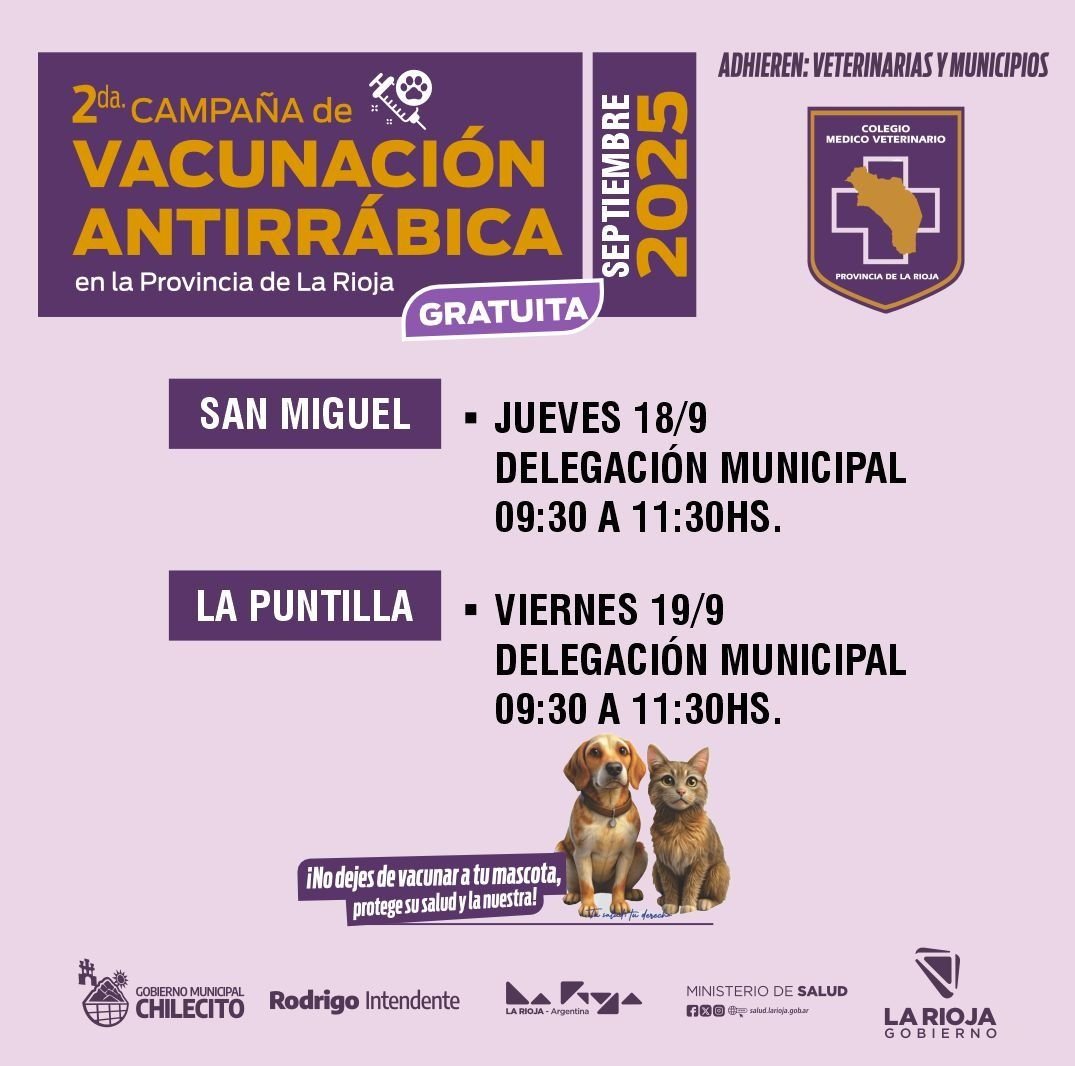 La Secretaría de Producción, a través de la Dirección de Veterinaria, continúa con la campaña gratuita de vacunación antirrábica y desparasitación de animales domésticos.