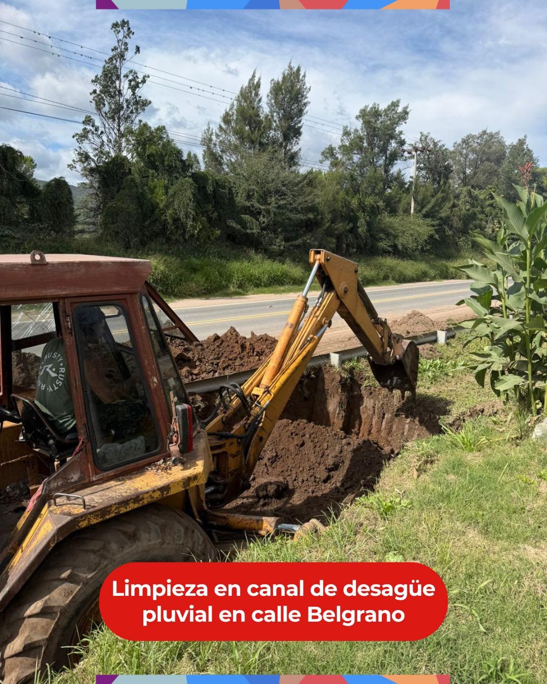 Además, se llevaron a cabo tareas de limpieza del canal de desagüe pluvial ubicado en la intersección de Thea y Av. Belgrano, fundamentales para garantizar un correcto escurrimiento del agua y prevenir inconvenientes.