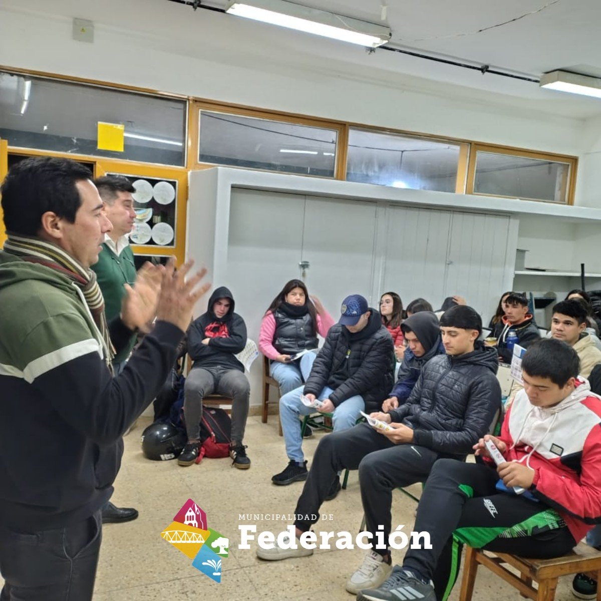 Ayer viernes realizamos una nueva charla de concientización vial junto a estudiantes de la ciudad, en la Escuela Secundaria de Jóvenes y Adultos (ESJA).