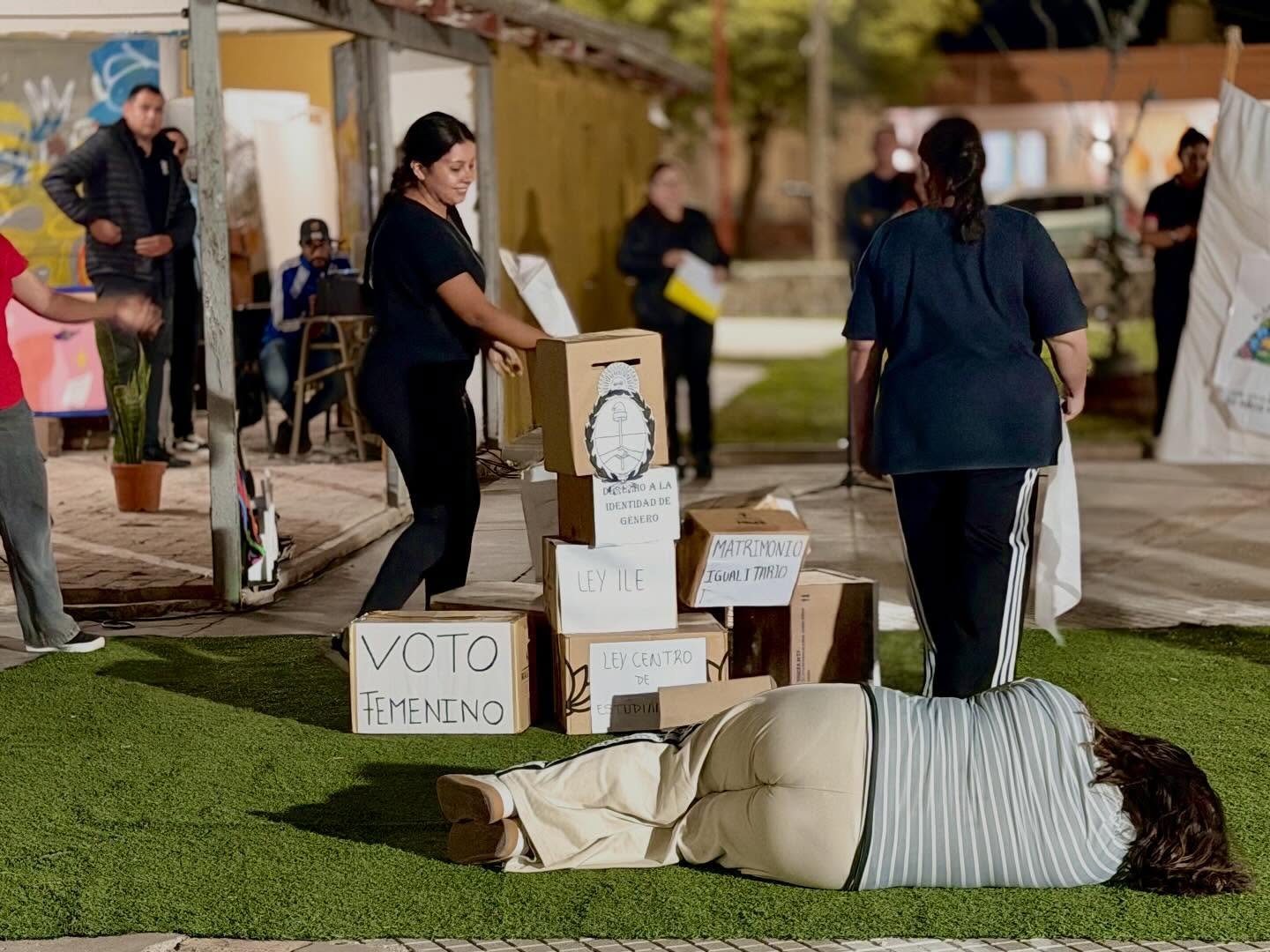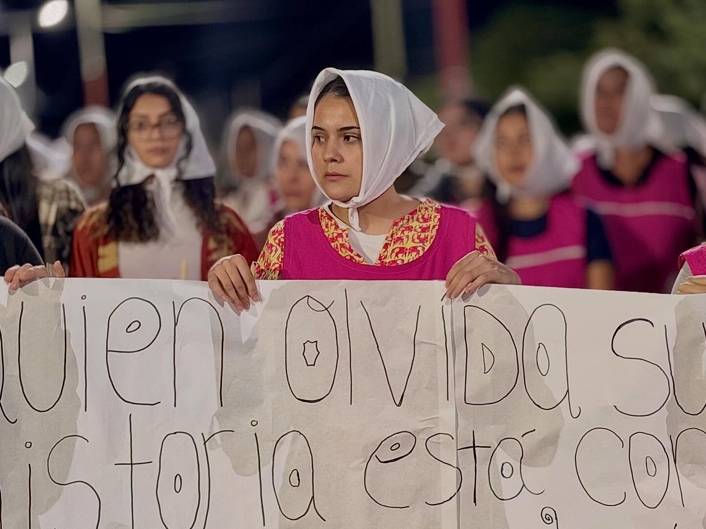 Asimismo, acompañamos la actividad del Instituto de Educación Inicial “Rosario Vera Peñaloza”, que incluyó una caminata con intervenciones hasta la Plaza de la Cultura, finalizando con la propuesta “La herencia de los pañuelos: medio siglo bordando justicia”, un espacio de memoria y simbolismo.