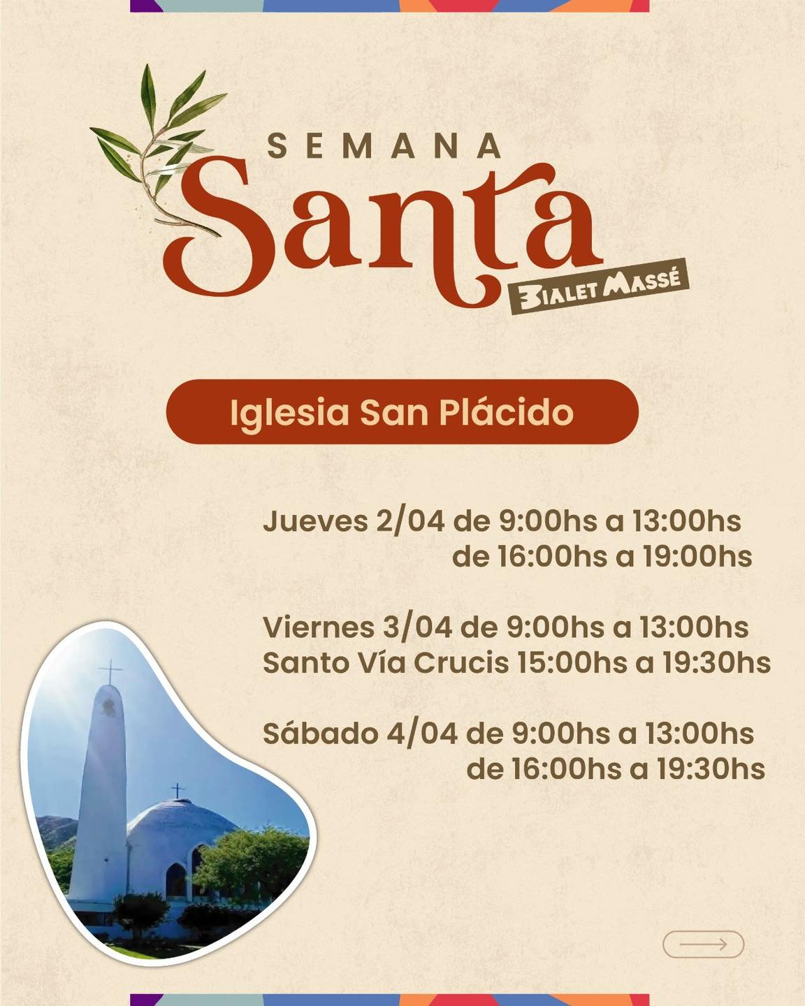 En el marco de la conmemoración de Semana Santa, compartimos los horarios del Circuito Religioso de nuestra localidad, invitando a vecinos y visitantes a transitar este tiempo de fe, reflexión y encuentro.