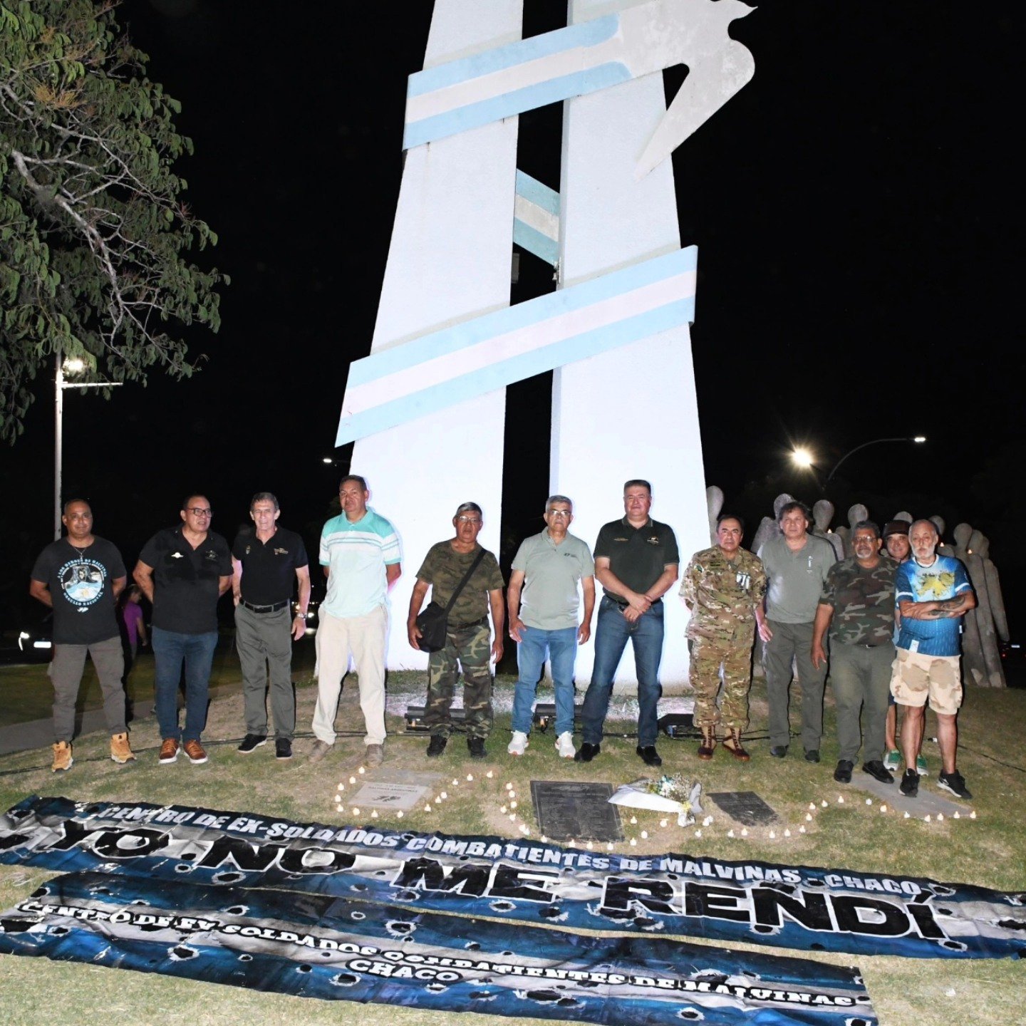 Con el acompañamiento del Municipio, se realizó la tradicional vigilia en el monumento sobre avenida Sarmiento, en la antesala del 2 de abril.