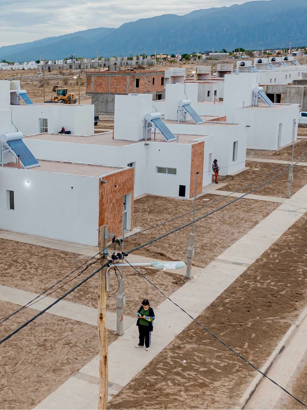 80 familias de solteros recibieron su hogar propio en el barrio Aires del Sur, con viviendas y dúplex equipados con termotanques solares y toda la infraestructura necesaria para una vida de calidad.