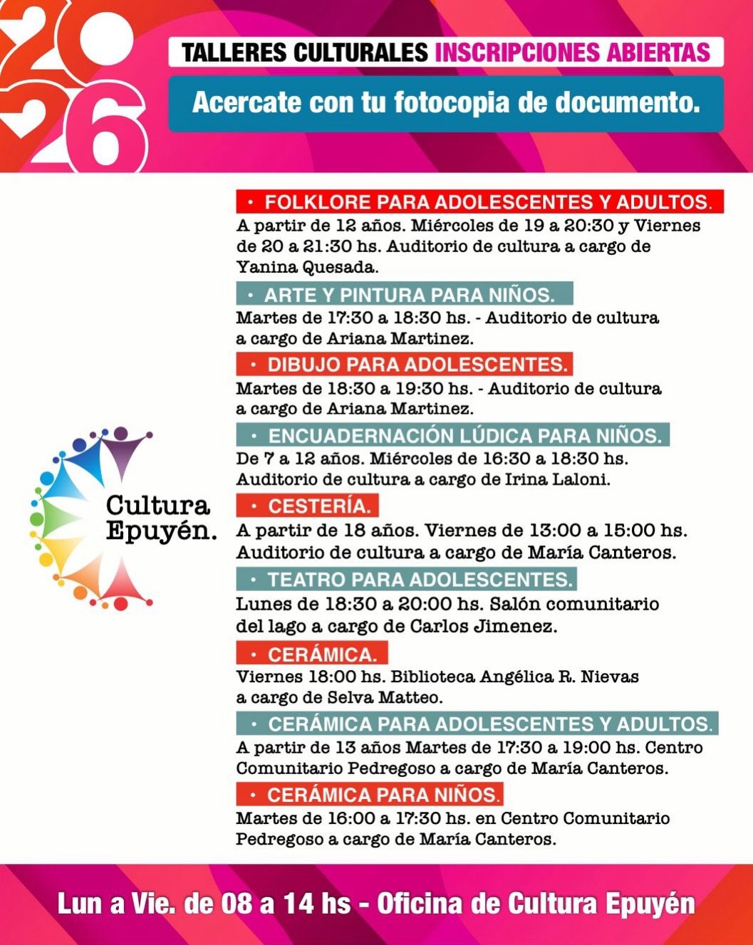 #Epuyén #TalleresCulturales2026 #InscripcionesAbiertas