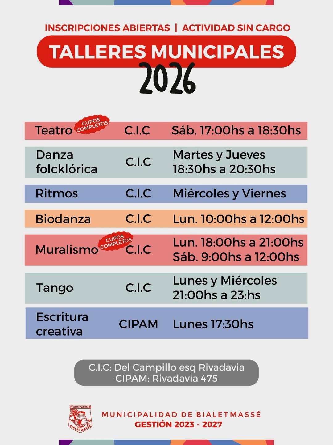 ✨ TALLERES MUNICIPALES – BIALET MASSÉ 2026 ✨