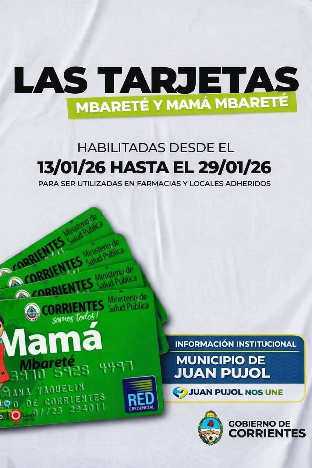 Tarjetas Mbareté y Mamá Mbareté habilitadas.