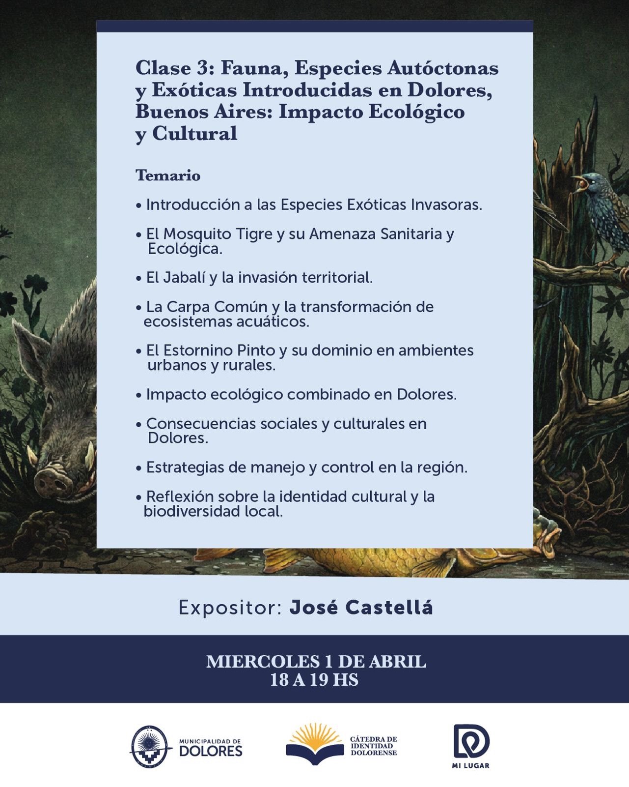 💬 Te comentamos acerca de la clase 3 de la cátedra de Identidad Dolorense: 👉🏼 Fauna, especies autóctonas y exóticas introducida en Dolores, impacto ecológico y cultura.