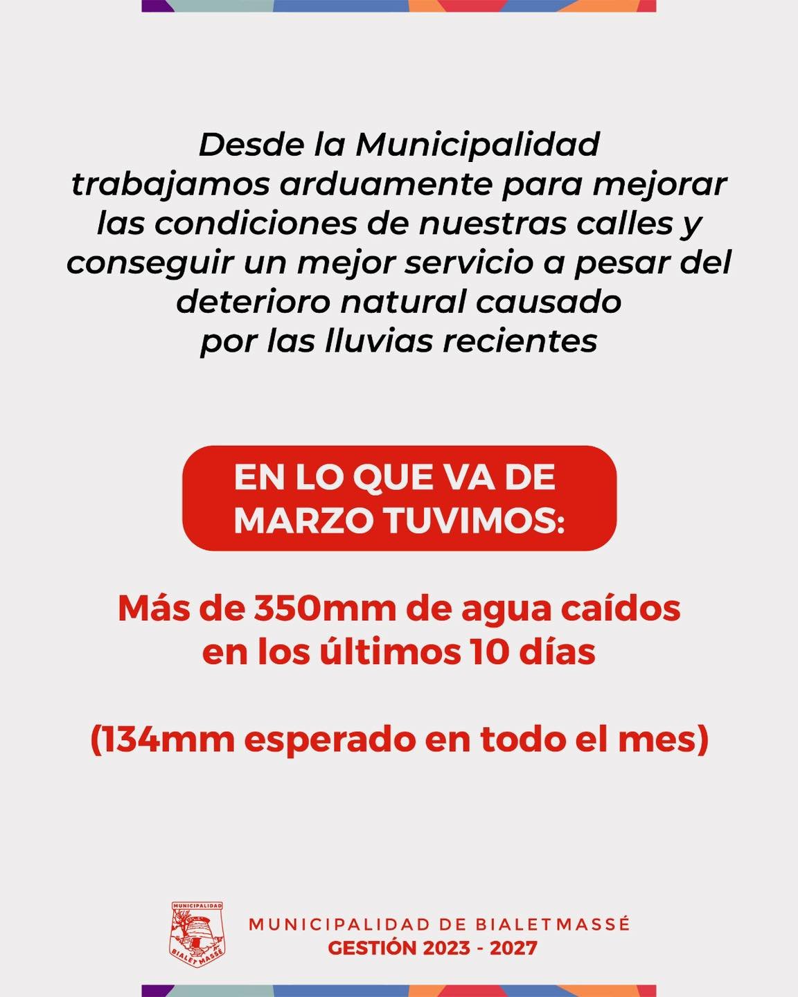 Desde la Municipalidad de Bialet Massé continuamos trabajando intensamente para mejorar el estado de nuestras calles, realizando tareas de mantenimiento y acondicionamiento, pese al deterioro natural que provocan las precipitaciones.