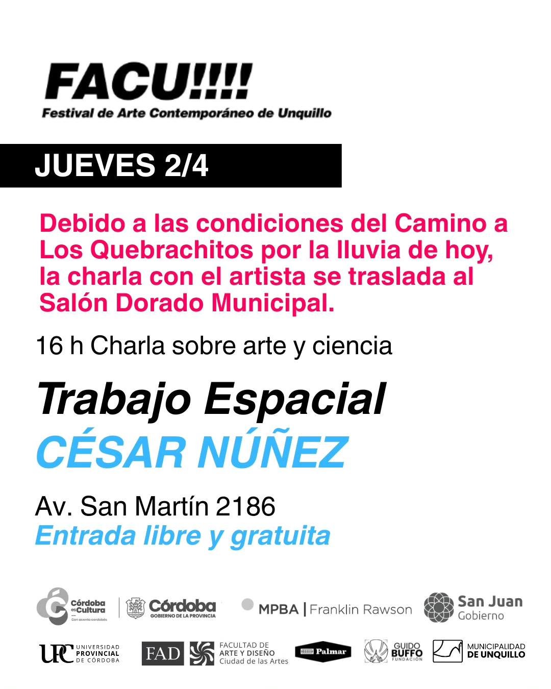 🌧️ Debido a las condiciones del Camino a Los Quebrachitos por la lluvia de hoy, la charla se traslada al Salón Dorado Municipal.