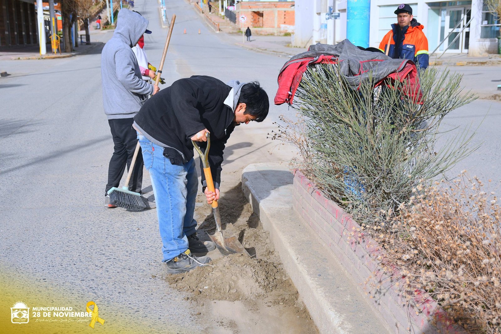 El sector de Mantenimiento y Forestación de la Municipalidad de 28 de Noviembre llevó adelante tareas de limpieza y barrido de calles en la zona de la Av. Hipólito Yrigoyen, con el objetivo de mantener nuestros espacios en mejores condiciones para el tránsito y la vida cotidiana de los vecinos. 🧹.