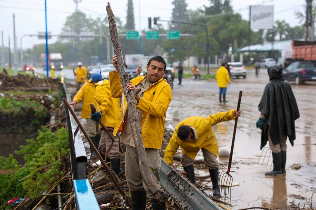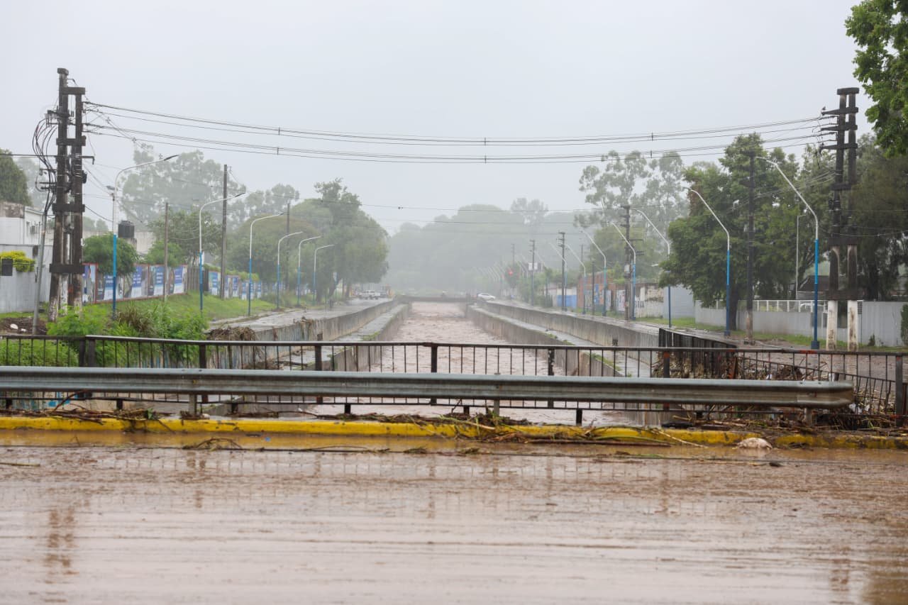 🗣️ “Llovió mucho y el agua ha llevado muchas ramas y residuos que han puesto al límite el Canal Sur. Por eso estamos acá con Defensa Civil municipal y provincial y Desarrollo Social trabajando juntos”, señaló Chahla.
