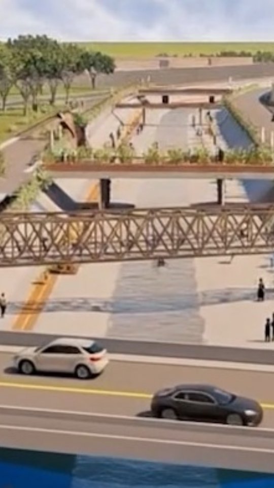Este tramo de la obra comprende los 2400 metros que se extienden desde la desembocadura en Ruta 3, hasta calle Don Bosco e incluye un nuevo puente vial en calle Pacífico.